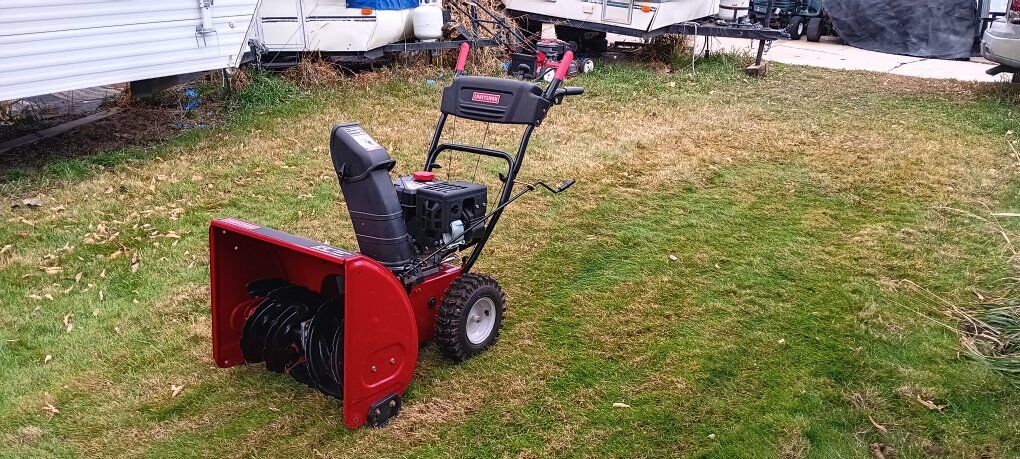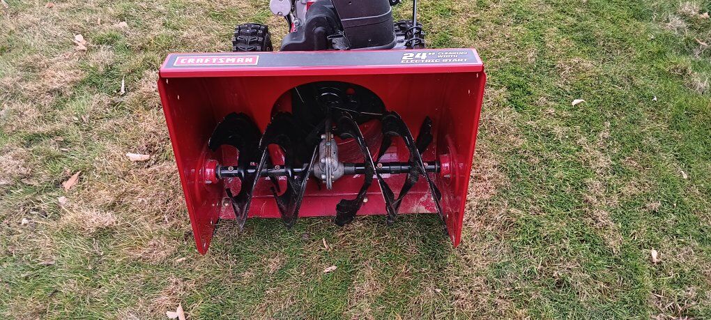 Craftsman Snow Thrower 10 hp engine 6 forward speed / 2 reverse speed Electric start 2 stage 24" clearance path sarts and works great no issues is a new Snow Thrower hardly used Scraper blades has. never touched the ground cost new $ 649.00 new, it will make a great Christmas gift asking $474.00 cash only thanks for looking