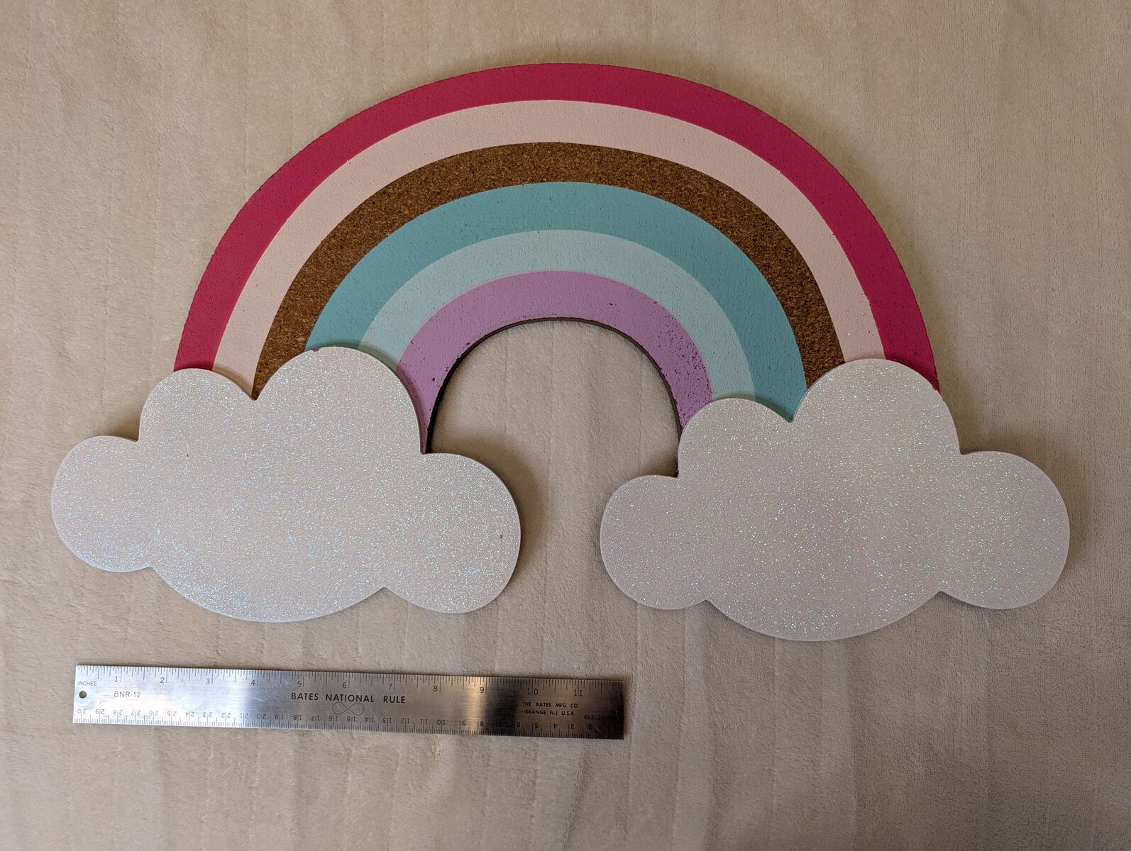 VenmoLarge rainbow wall décor featuring soft pastel arches and sparkly white cloud accents. Perfect statement piece for a nursery, kids room, playroom, or cheerful home décor.