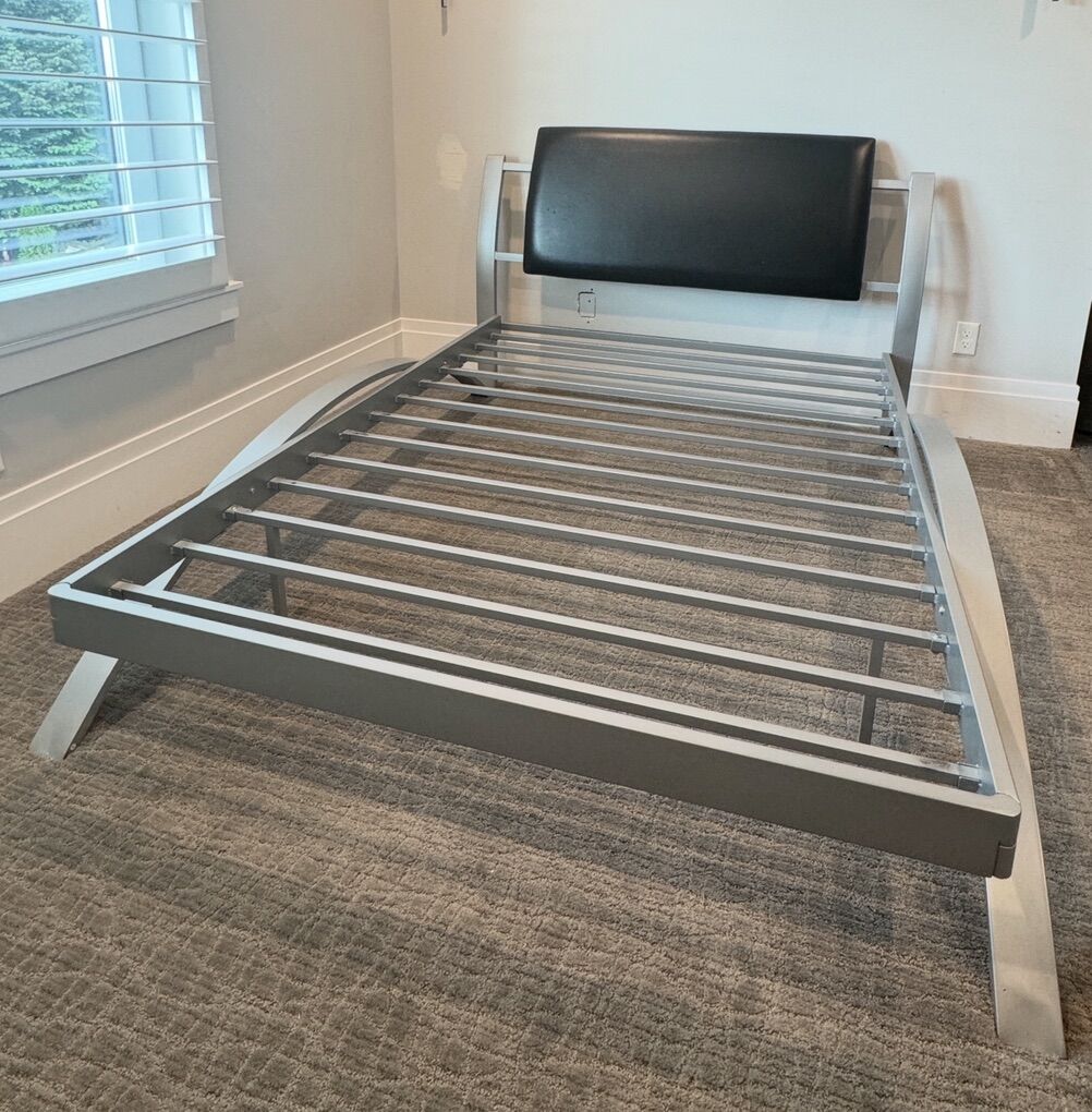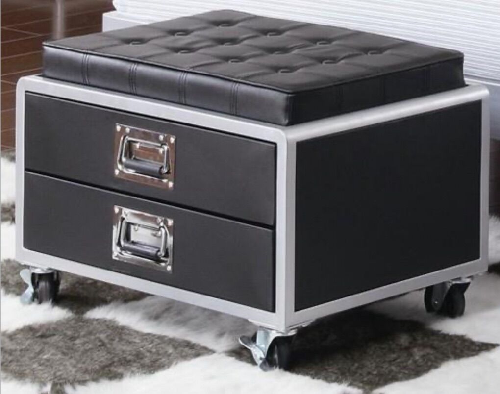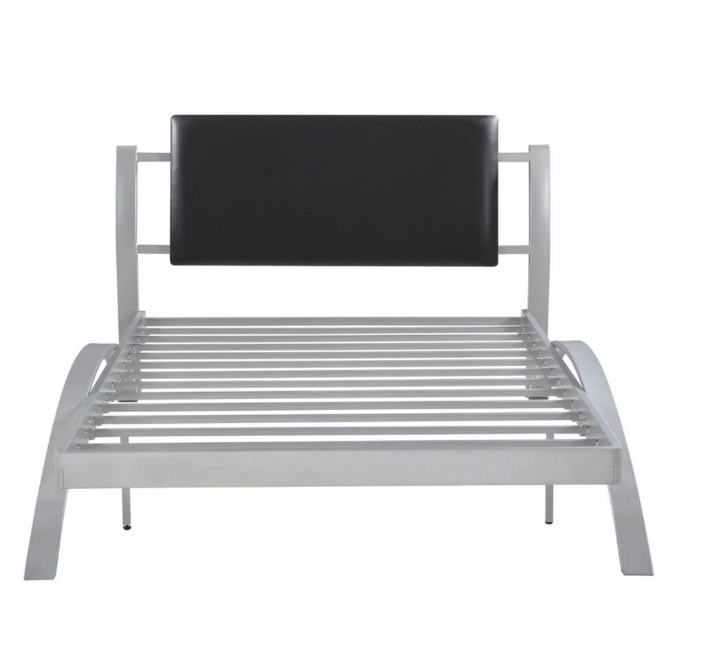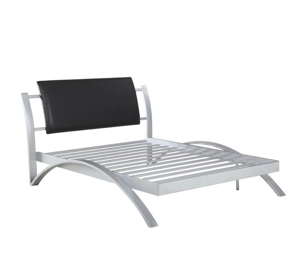 VenmoLeClair Black and Silver Metal Youth Bedroom Set by Coaster, Full size. Comes with Rolling Storage Chair with two drawers in a black and silver finish and a mobile cabinet nightstand in black and silver finish.