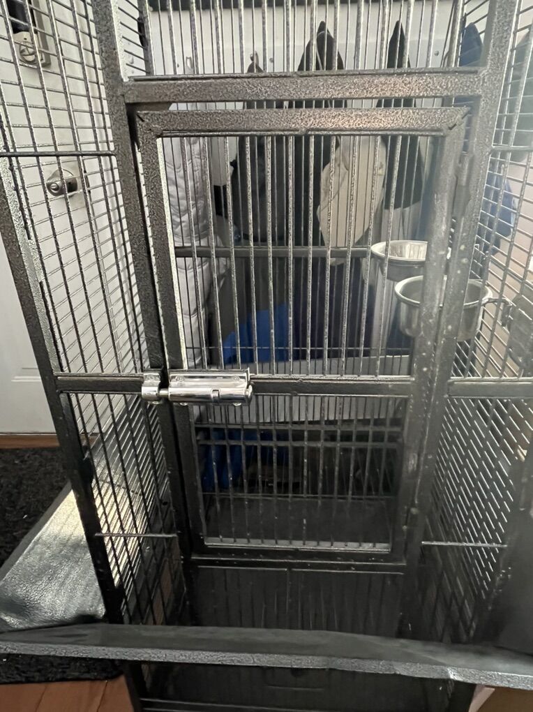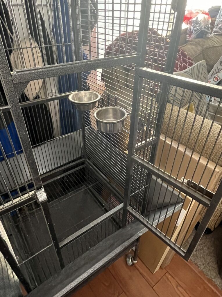 Iron Parrots African gray Conure Cage skirt Play stand has two upper dishes and nice top perch. No inside perch included.