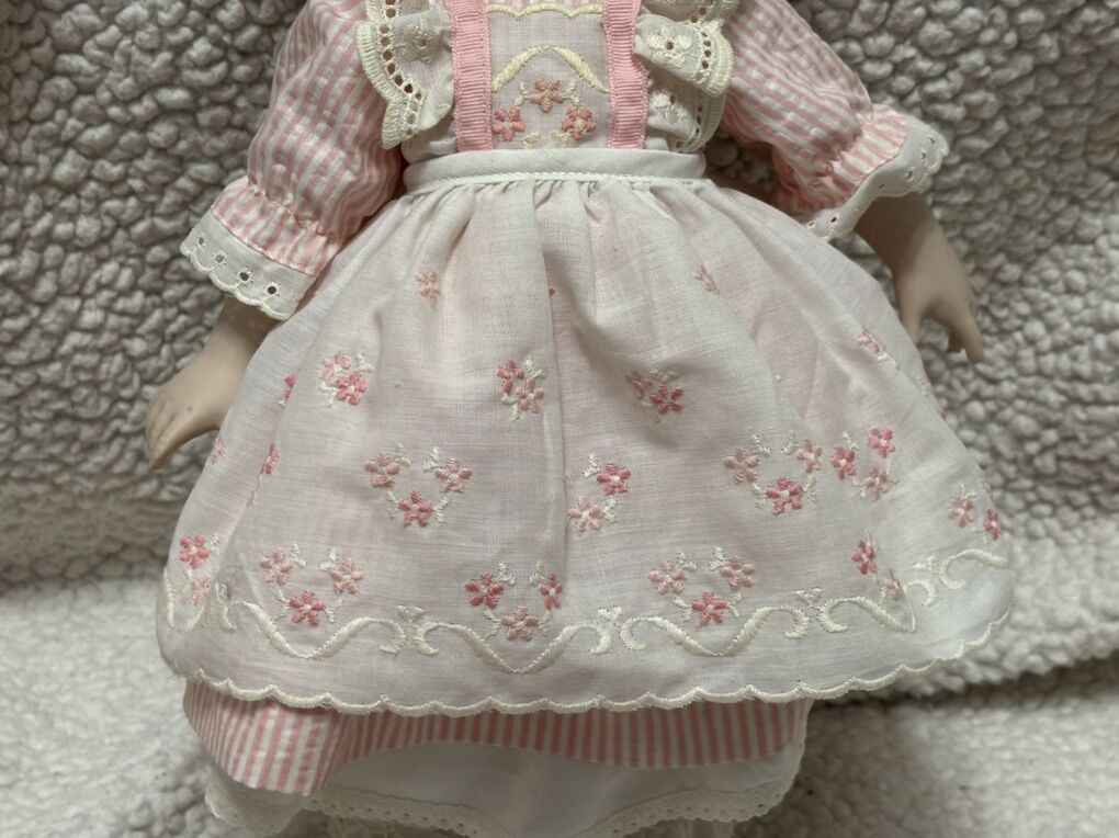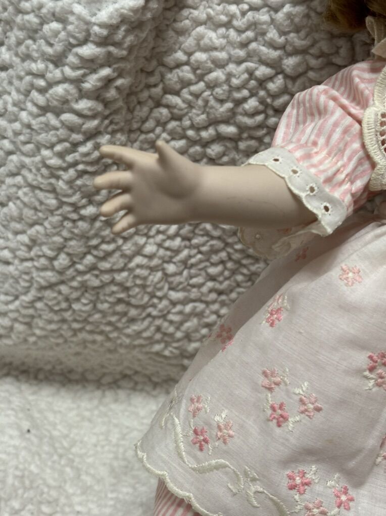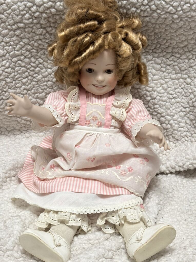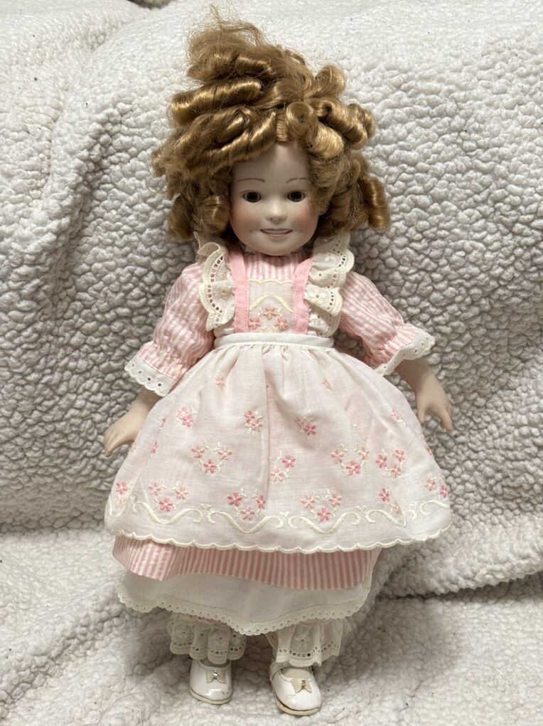 17” 1982 Shirley Temple Doll Porcelain Moveable Curly Hair Dimples Pink Flowers Vintage No advance payment Payment and pick up are at the same time.
