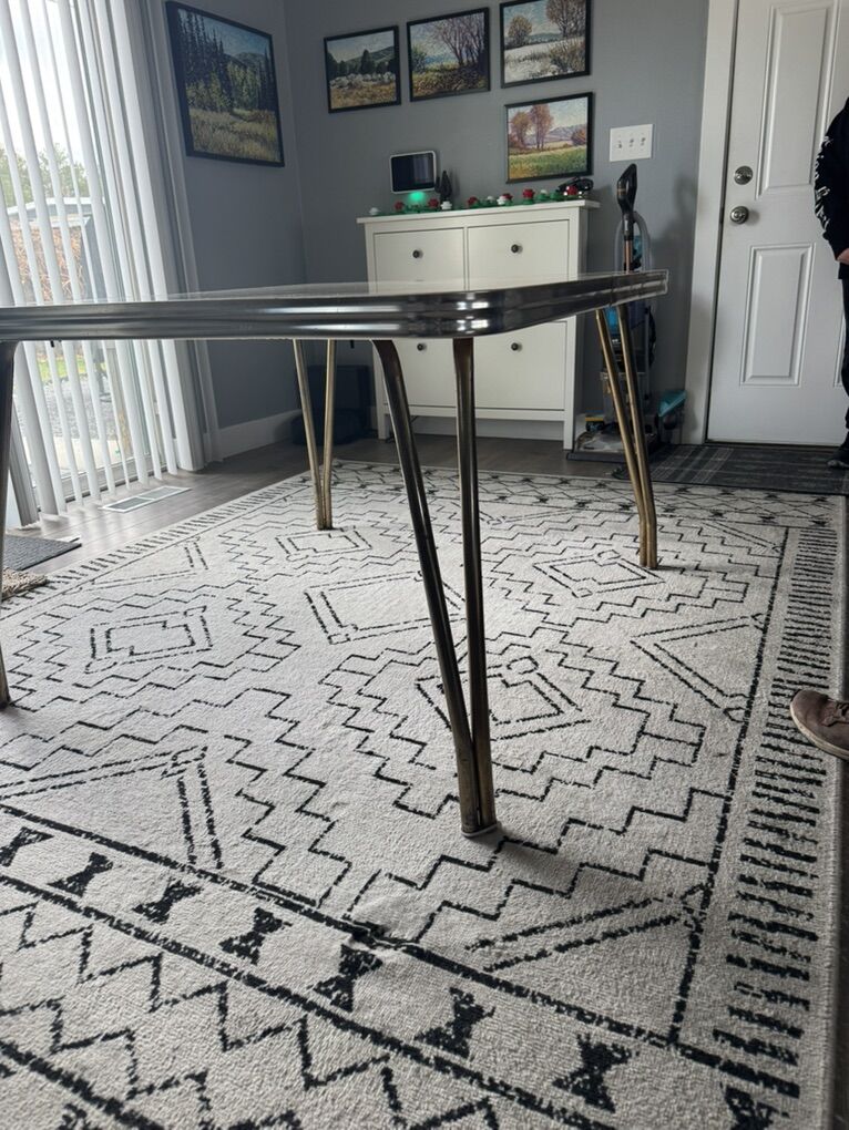 Includes 2 removable leaves – 12” each Expands from 47” to 59” to 71” Great condition, no cracks, warping, or stains Chrome banding and legs in good shape.