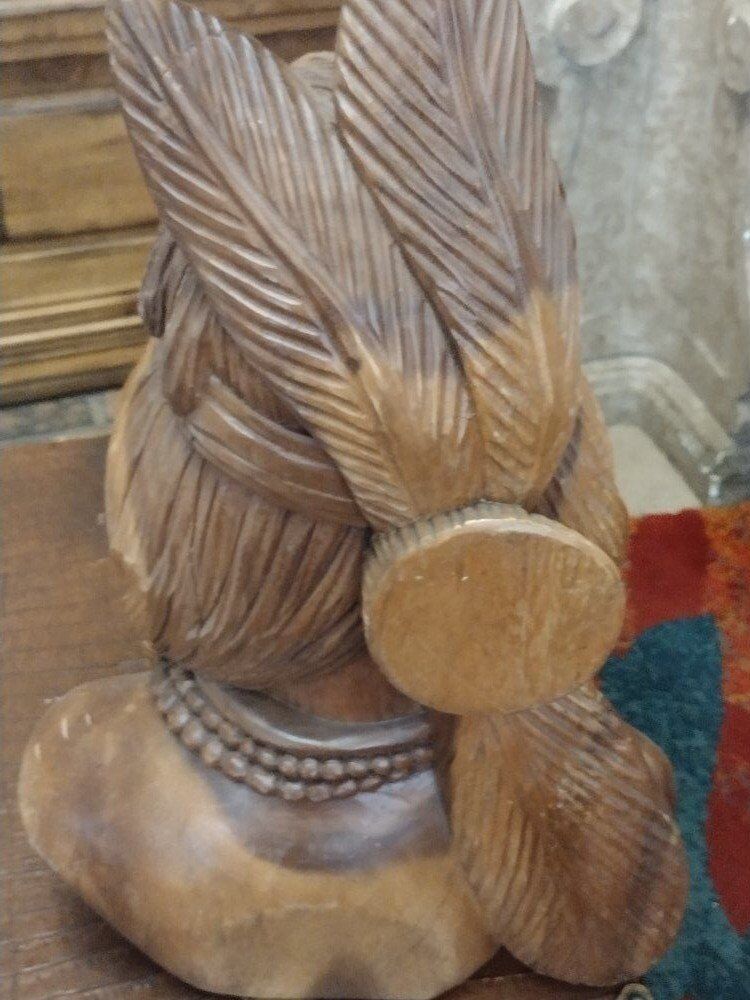 American Indian hand carved wooden bust In great condition 21" x 13" x 9"