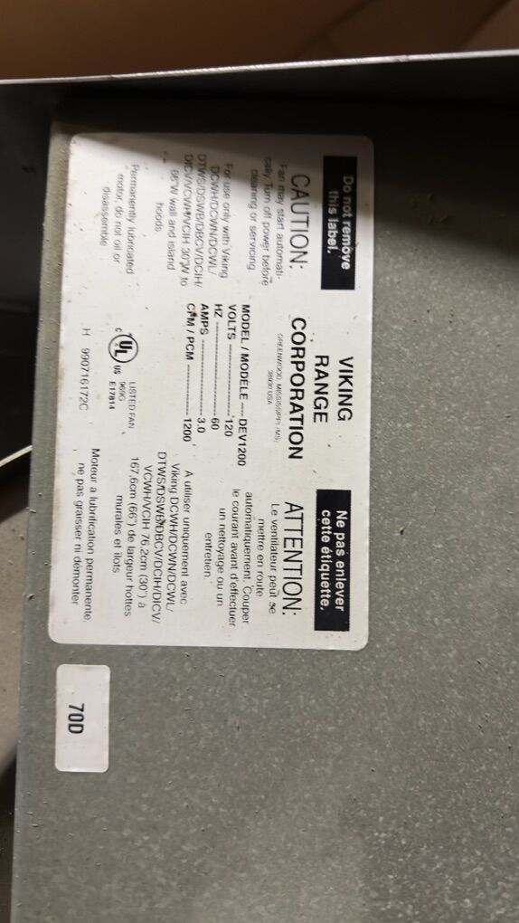 VenmoFor sale Viking DEV1200 OBO 1,200 CFM External Blower Model: DEV1200 1,200 CFM Exterior-Power Ventilator Used like new