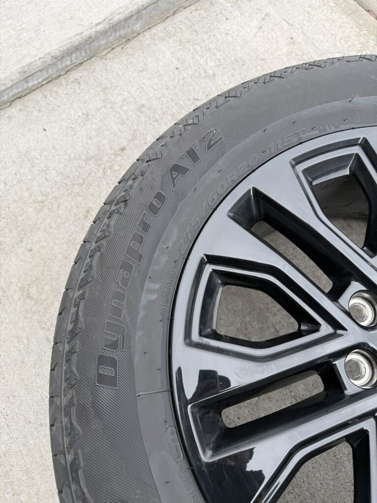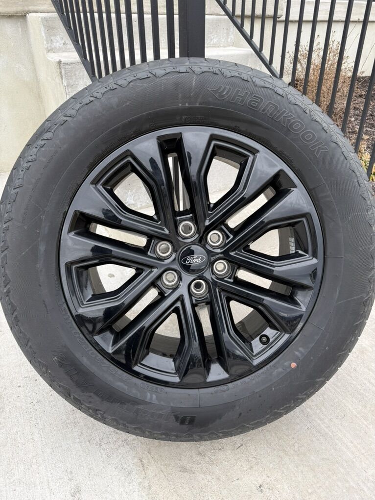 ApplePaySet of 4-Ford F150 Rims and Tires 275/60R20 Hankook Dynapro AT2 in excellent condition,,asking $1700 obo Tires are new Rims have only 5000 miles Bolt pattern 6-135 They will fit ford f150 from 2004-2026 Ford expedition Lincoln Navigator Text anytime 385-402-2292