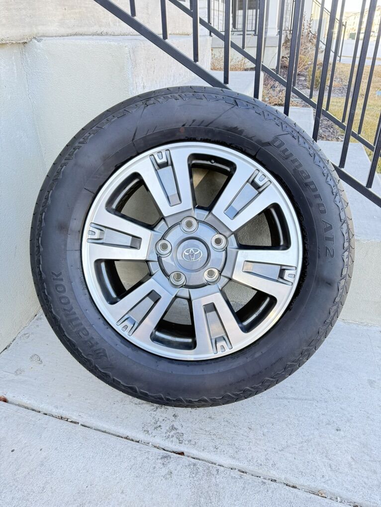 ApplePaySet of 4-Toyota Tundra Sequoia Rims and Tires 275/60R20 Hankook Dynapro AT2 only 500 miles on them,in excellent condition asking $1400 obo Bolt pattern 5-150 I can sell the rims or tires separately They will fit Toyota tundra sequoia Land Cruiser Lexus Text anytime 385-402-2292