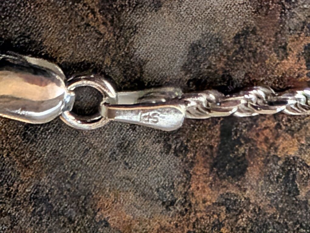 PayPalThis 18 inch rope necklace is made of high-quality .925 Italy sterling silver, perfect for occasions like Christmas, anniversaries, or birthdays. The lobster closure ensures a secure fit, and the simple yet elegant design in a beautiful silver color makes it a versatile piece of jewelry that can be worn daily or for special occasions. The brand, spi, offers a great quality product with a touch of style, making it a great addition to any jewelry collection. 75 dollars or best offer. Will ship world wide.