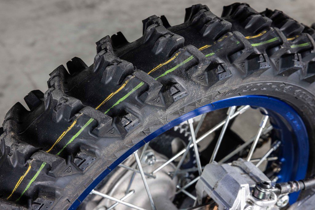 Stylish blue, lightweight 17-inch front and 14-inch rear rims are durable, reduce unsprung weight for optimal suspension performance, and come wrapped in Dunlop® MX3S tires for exceptional traction. Big 220mm and 190mm disc brakes offer precise control and outstanding stopping power.