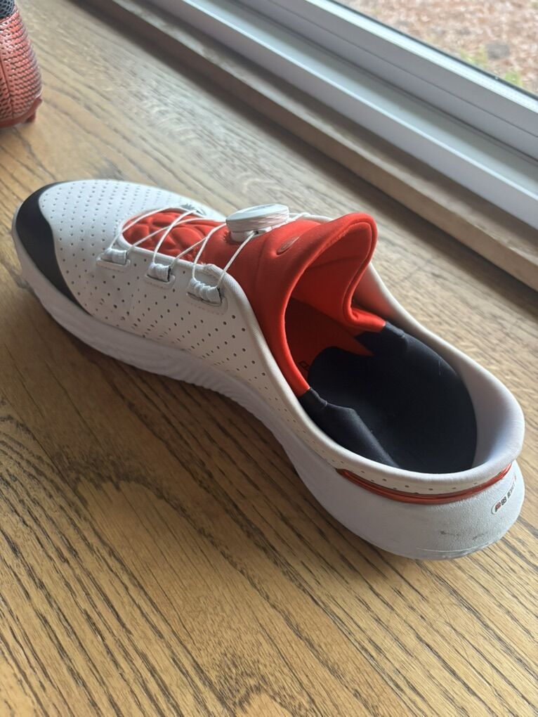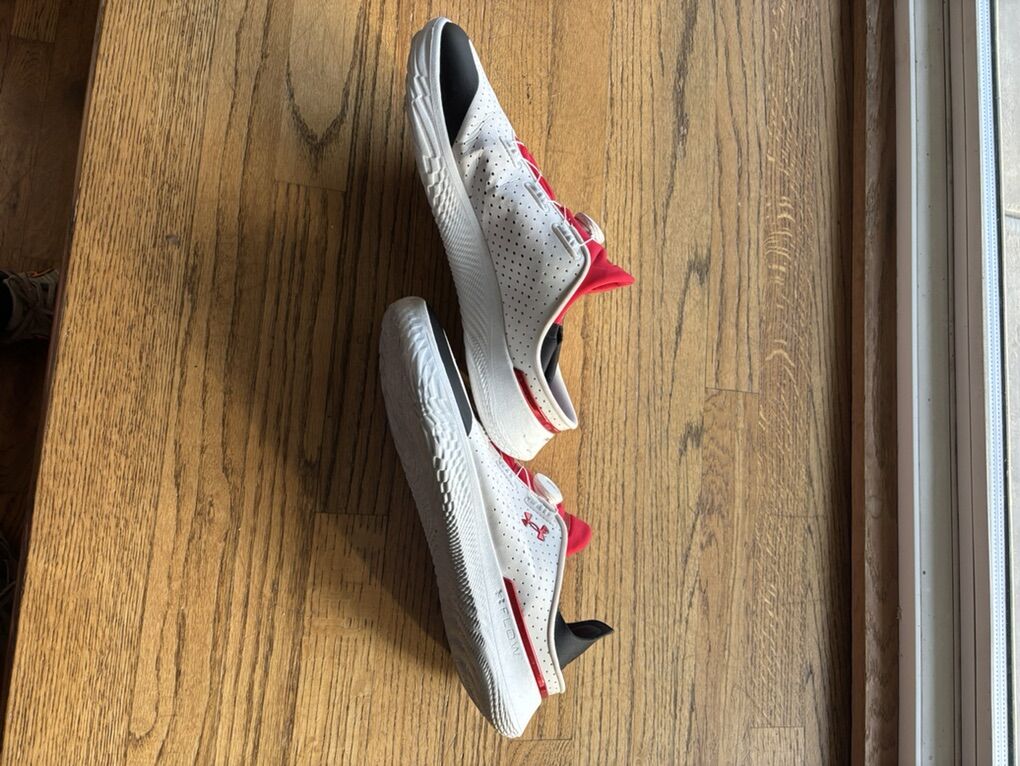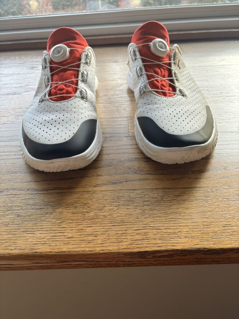 Zelle Beautiful under armor size 13 recovery, leather shoes, worn twice, heal folds down for slides or lifts up for shoes. $49/offer.