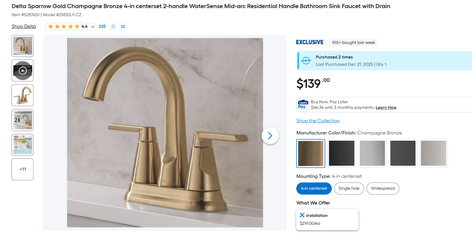 VenmoNEW Delta Sparrow 25832LF-CZ Champagne Bronze Centerset 2-Handle Bathroom Faucet
