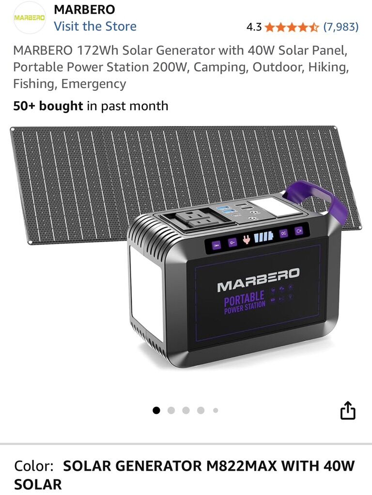 VenmoMarbero portable generator/battery bank for sale. Solar panel, required connecting cables, and original charging cables included. Comes in original packaging. See below for specifications. I received two portable generators as gifts, so I decided to sell this one (as such none of the parts have been used). Retails for $150, asking $115 in hopes that someone who will really enjoy it can get it.