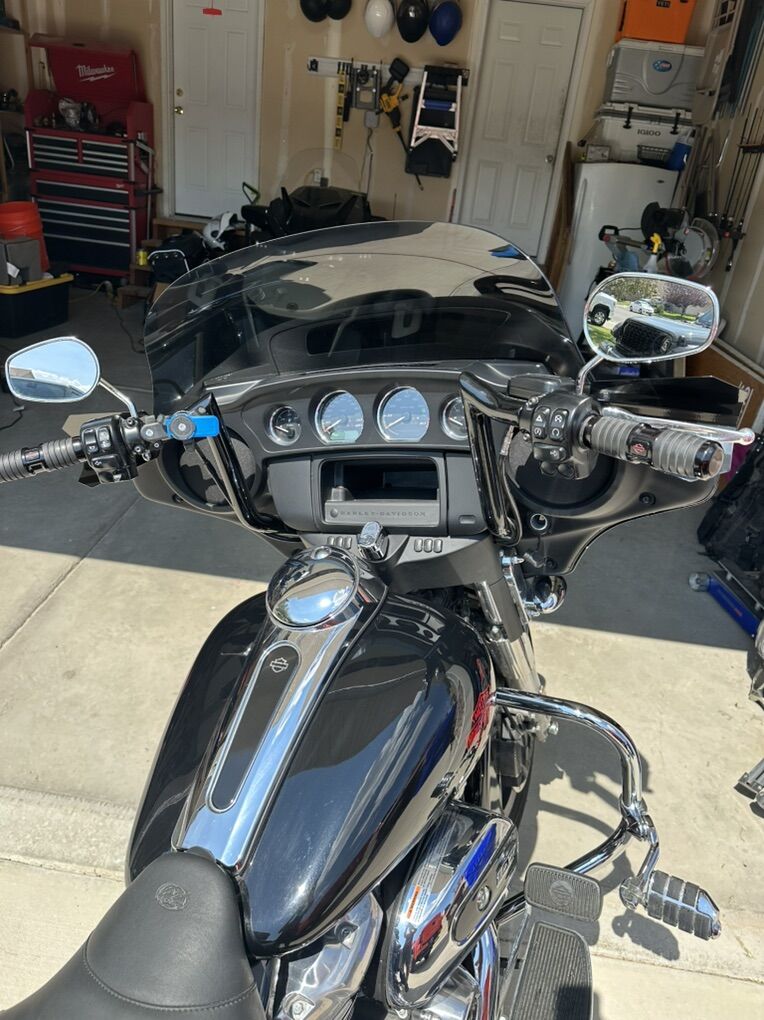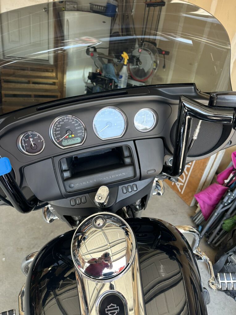 One owner 2021 Harley Davidson Electra Glide Standard FLHT 107 Cubic Inch Milwaukee Eight Engine -17741 miles that could go up a bit -New tires at 13500 miles. -Mustang Super Touring seat with driver backrest -12 inch Dominator Meathook handlebars -Heated grips -Hand guards -Freedom Shields medium grey 9” windshield -Rinehart slip on exhaust - small blemish on the tip of one -Custom Dynamics LED headlight with halo -Custom Dynamics Probeam LED front and rear turn signals -Quick release passenger backrest -Highway pegs -Passenger footboards