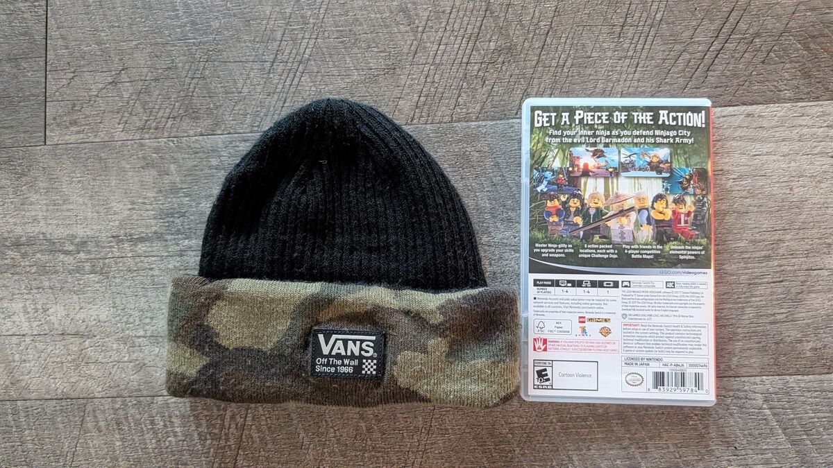 GooglePayUsed but new condition. Shown next to a Nintendo Switch case for size reference. The label says "one size fits all". It fit our 6 month old nicely up until she was 1.