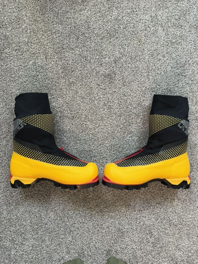 Brand new, La Sportiva G-Tech boots in a 43. Unfortunately ended up being about a half size too small for my feet. I've worn them climbing once.