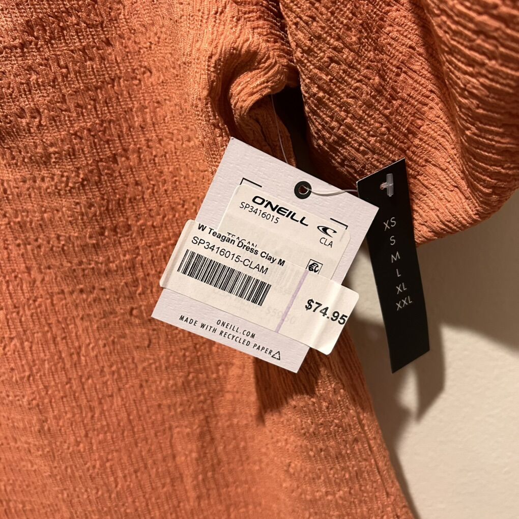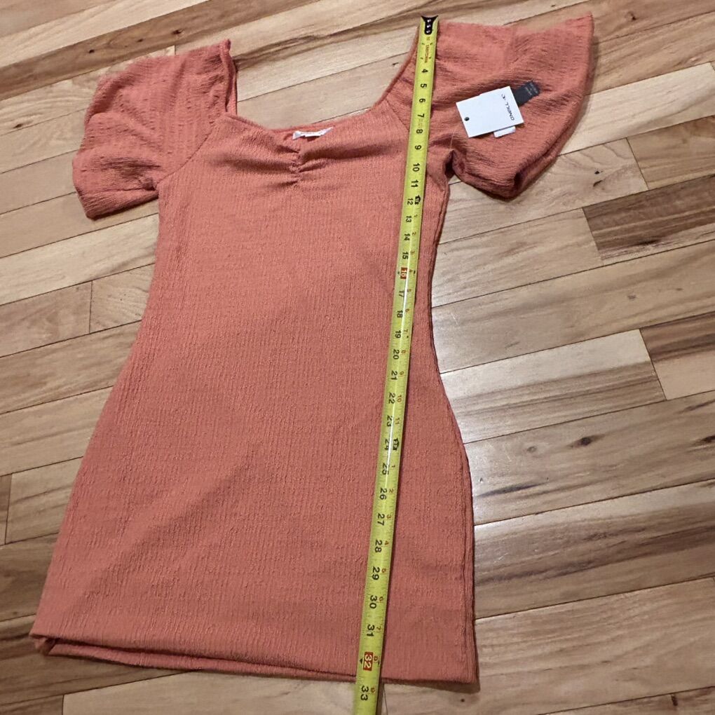 O’Neill NWT Teagan Bodycon Dress with Puffy Short Sleeves - Women’s Size Medium - color is ‘clay’ (like a darker peach) - pull over style with textured, stretchy fabric - brand new with tags. MSRP $74.95.