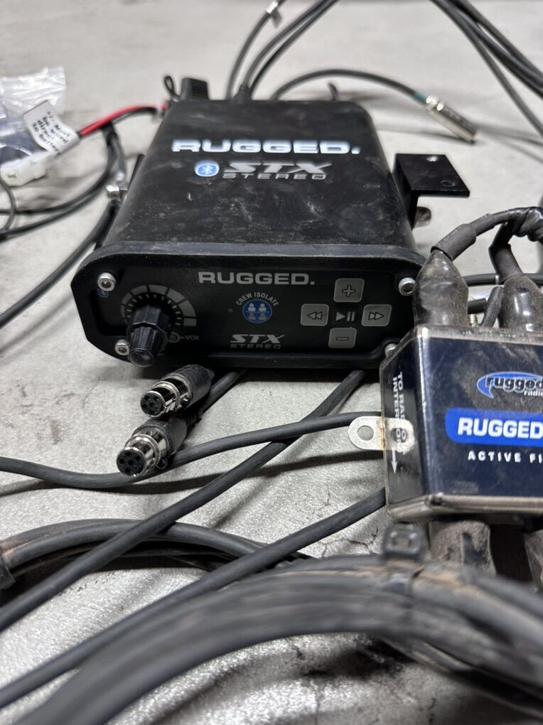 Complete Rugged Radios STX Stereo + GMRS communication system configured as a 4-place intercom. This is a universal system that can be installed in most UTVs, side-by-sides, off-road rigs, or custom applications.