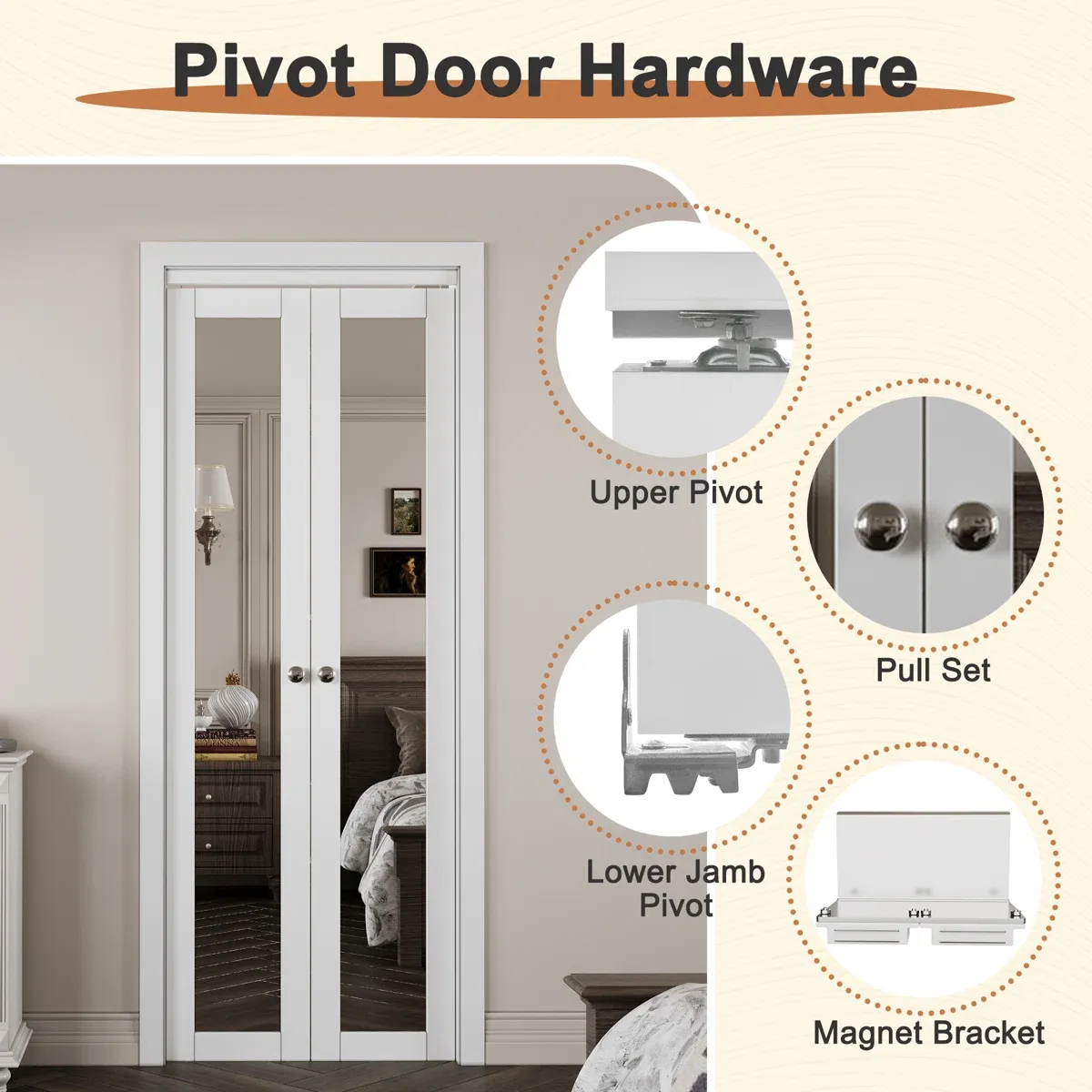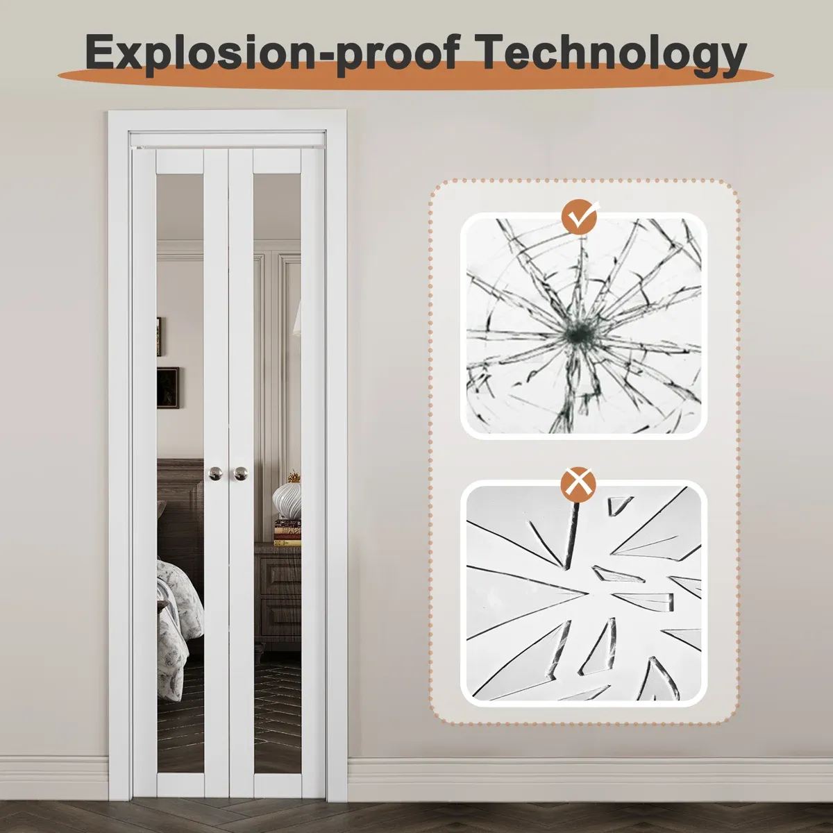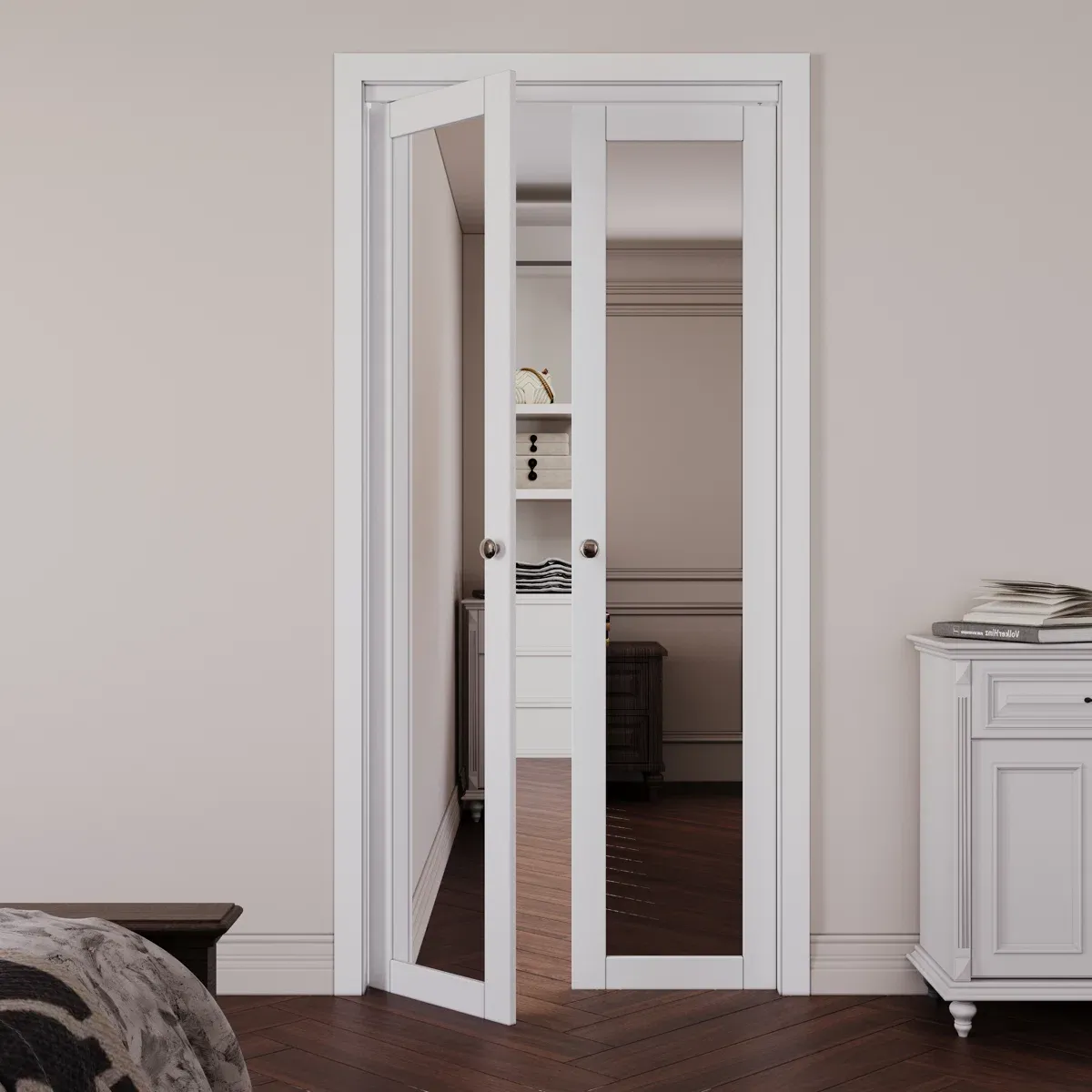 CashAppARK DESIGN 36" x 80" 1-Lite Mirror & MDF White Solid Core Prefinished Closet Bifold Door