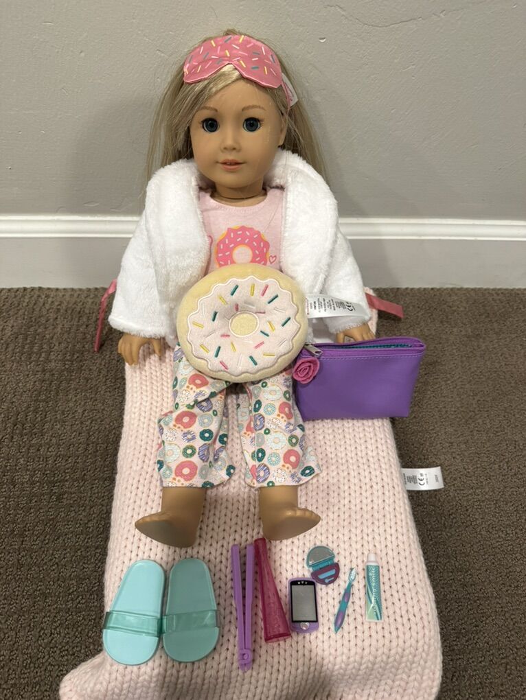VenmoAmerican Girl Doll Sweetest Slumber Party Set Donut Dreams Chair/Bed/PJs 18. Comes with everything pictured. Pickup in South Saratoga Springs.