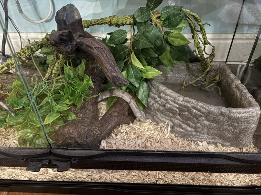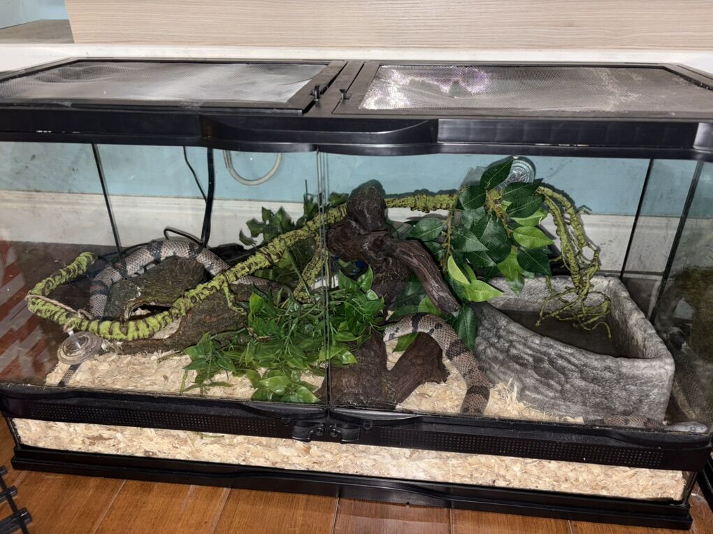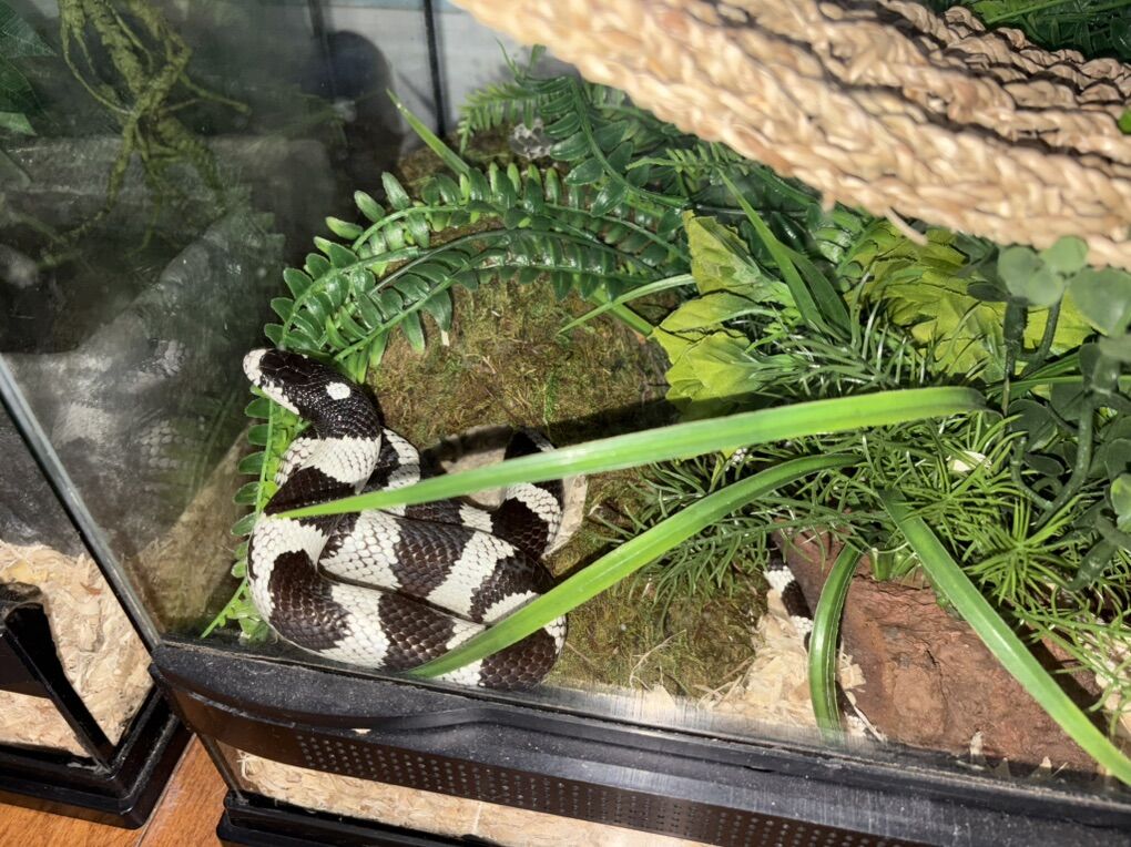 My son has two King snakes that he’s selling. Each for $100 or buy both for $180. Prices include enclosures and everything inside them. “Fred” the Gray Banded King snake is the brownish gray with black stripes. He loves being held, and is a sweetheart. His enclosure has damage to one of the sides of the lid, but it’s been repaired as best we can and he never tries to escape. “George” the California King snake is black and white striped. He has the neater color and better enclosure, but he doesn’t like to be held and does nip at you if you’re not careful. He will try to escape if the enclosure is not shut 100% correctly. They are fully grown male adults and are about 8-10 years old. My son also has about 100 frozen mice size medium that the snakes like to eat that he is wanting to sell for $1.50 a piece $60 for a bag of 50 or $100 for all. Everything for $175.