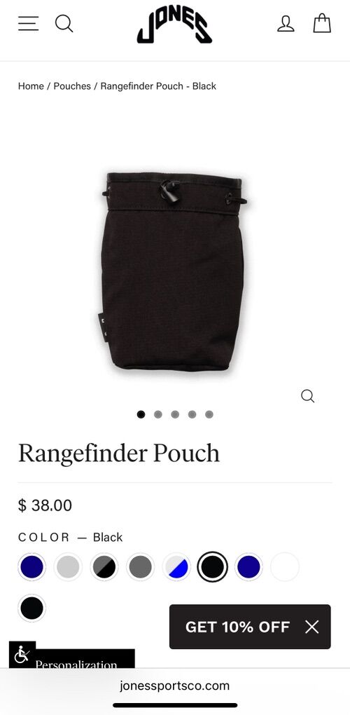 Keep your rangefinder handy with the Jones Rangefinder Pouch. Clip it on your golf bag with the YKK carabiner, and secure your laser with the cinch-close top.