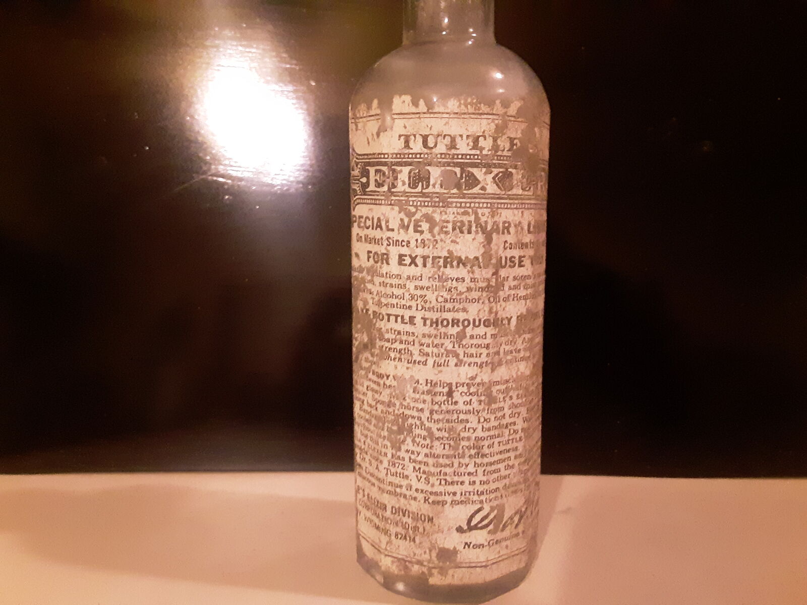 ZelleTuttles Veterinary Elexer Elixer vintage medicine bottle in fair shape still has cap. Tuttles cure all 30 percent alcohol, not for human consumption wink wink. I Take venmo, paypal, and zelle, if you pay post i will mail it too you. I have 19 years on KSL so be assured that your package would be sent in a professional and timely manner. Just downsizing my antique and vintage collection lots of interesting items for sale, hit more by seller. I am in Murray once a week, i could arrange pickup there.