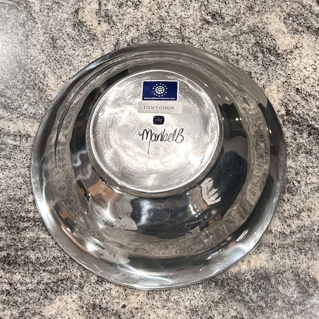 Handmade aluminum grapevine motif serving bowl signed by the artist Maribel B. for Old Town Imports item# 634628. Text preferred or leave a voicemail and I’ll get back to you. Check out my other listings open to offers.