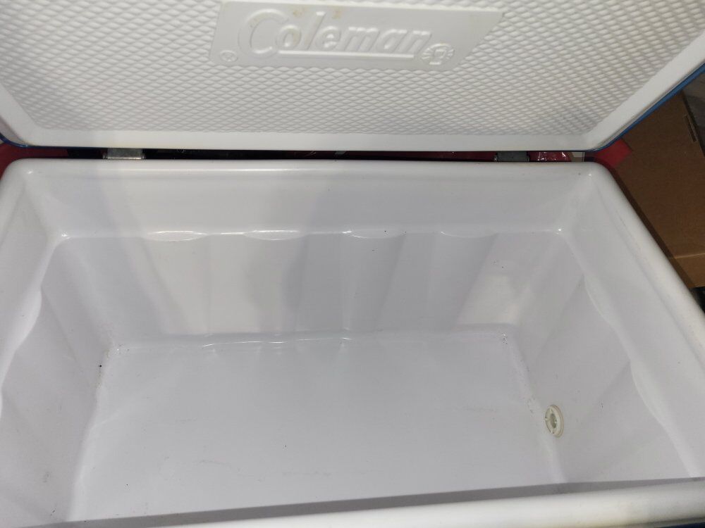 TEXT ONLY 2 USED COOLERS 1 COLEMAN 1 RUBBERMAID COLEMAN 12.75"H x 22.5"L x 10"W RUBBERMAID 10.5H" x 12.5"L x 20.24"W