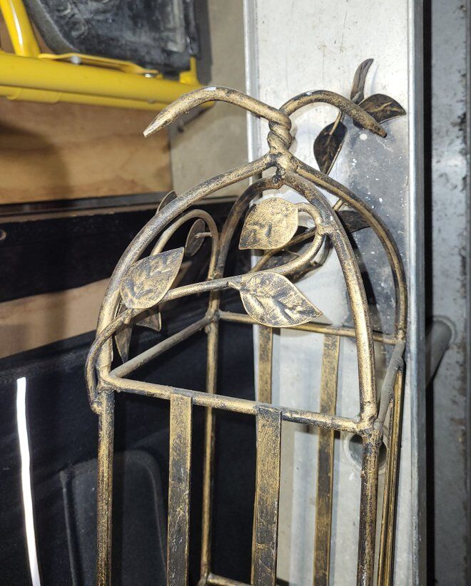 TEXT ONLY USED BRASS 3 TIER WIRE SHELF 6"W x 36"H x 6"L