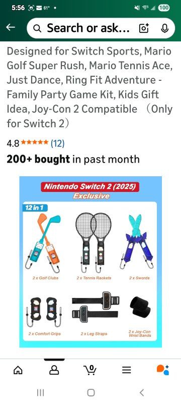 2025 Nintendo Switch Accessories 12 in 1 Bundle Designed for Switch Sports, Mario Golf Super Rush, Mario Tennis Ace, Just Dance, Ring Fit Adventure - Family Party Game Kit, Kids Gift Idea, Joy-Con 2 Compatible (Only for Switch 2) Product Image 5 2025 Nintendo Switch 2 Sports Accessories 12 in 1 Bundle Designed for Switch Sports, Mario Golf Super Rush, Mario Tennis Ace, Just Dance, Ring Fit Adventure - Family Party Game Kit, Kids Gift Idea, Joy-Con 2 Compatible (Only for Switch 2) Product Image 6 Product description 12 in 1 switch sports accessories kit for nintendo switch 2 12 in 1 sports accessories for switch 2 1 2 x Tennis Rackets 2 2 x Golf Clubs 3 2 x Swords 4 2 x Comfort Grips 5 2 x Leg Straps family party realistic game experience switch sports gifts for kid Features & details 12 in 1 Sports Kit Designed Exclusively for the 2025 Nintendo Switch 2 - Transform your Switch 2 gaming experience with this all-in-one 12 piece sports accessory bundle! Designed Eor Switch Sports, Mario Golf Super Rush, Mario Tennis Ace, Just Dance, Ring Fit Adventure, and more, this kit includes 2 tennis rackets, 2 golf clubs, 2 swords, 2 comfort grips, 2 leg straps, and 2 Joy-Con wrist bands. Perfect for enhancing your favorite games, it’s the ultimate upgrade for immersive, interactive fun. NOTE: ONLY FOR 2025 SWITCH 2 Next-Gen Immersive Gaming Experience - Enjoy a new level of realism with accessories optimized for the latest Switch 2 hardware. Whether you’re swinging a tennis racket, putting on the golf course, or dueling with swords, these accessories deliver precision, comfort, and seamless compatibility. Say goodbye to generic controllers and hello to a gaming experience that feels like the real thing! Family-Friendly Fun & Fitness - Turn your living room into a sports arena with accessories that keep everyone active and engaged! This kit promotes physical activity and family bonding, making it perfect for game nights, holidays, or weekend fun. From kids to adults, everyone will love the combination of entertainment and light exercise Premium Quality & Durable Design - Built to last, this kit features high-quality materials and thoughtful engineering. Each accessory is designed for durability, ease of use, and perfect fit with Switch 2 hardware. Unlike competitors, our accessories ensure no slippage, signal interference, or compatibility issues—guaranteed to enhance your gameplay every time Perfect Gift for Switch 2 Enthusiasts - Whether it’s a birthday, holiday, or special occasion, this 12-in-1 sports accessory bundle is the ideal gift for Nintendo Switch 2 owners.
