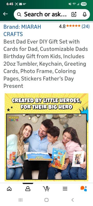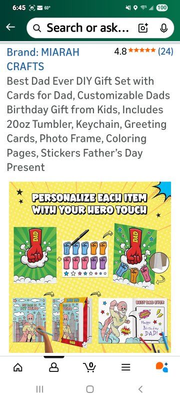 Brand-MIARAH CRAFTS (Description)Fathers Color-Blue & Red Theme-Best Dad Ever, Superhero Item dimensions L x W x H12.3 x 10.8 x 3.8 inches Seasons-All Seasons A Handmade Gift that Dad Will Treasure Forever: Let kids create the ultimate surprise for their hero! This all-in-one DIY craft box lets children color, decorate, and personalize every piece to make a heartfelt keepsake that Dad will never forget. 7-in-1 Superdad DIY Gift Set: Includes 3 color-in greeting cards, 3 DIY family stands with stickers, 5 coloring pages or dad, 6 occasian based sticker sheets ( Best dad ever, I love you dad, Happy Birthday, Merry Christmas and more) , a 20 oz stainless steel tumbler, sentimental keychain and beautiful photo frame - all packed in a vibrant comic-style gift box ready to personalize. High Quality and Super Durable: The reusable tumbler and sturdy keyring offer lasting use, while greeting cards, stands, and the photo frame proudly display Dad’s special memories. Created By Little Heroes, For Their Big Hero: Designed for kids to make something special with their own hands for Dad. They color, write names, paste stickers, and add a photo - transforming this into a one-of-a-kind “I made it for you, Dad!” moment. Stickers Perfect for any Occasion: Whether it’s Merry Christmas Dad, Best Dad Ever, Happy Father’s Day, Dad’s Birthday, Get well soon, Cards for Dad, I love you Dad, or "Just Because" - this kit comes with stickers for every super occasion so it always feels personal and fresh. Easy, Fun, and Mess-free: No glue, no complicated crafts. Everything kids need is included (coloring pencils not included). Each activity takes minutes to create and leaves Dad smiling for years. A Keepsake Box that Becomes The Gift: The colorful “Best Dad Ever” box doubles as a presentation case and memory chest - perfect for storing Dad’s favorite cards, drawings, and future notes from the kids. Quality You Can See and Feel: Built to last with durable materials: a double-wall stainless tumbler, sturdy frame, and thick coloring sheets designed for markers or crayons. Proudly designed by Miarah Crafts for families who love making memories together.