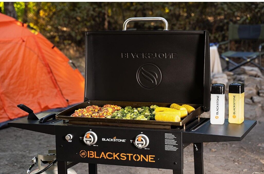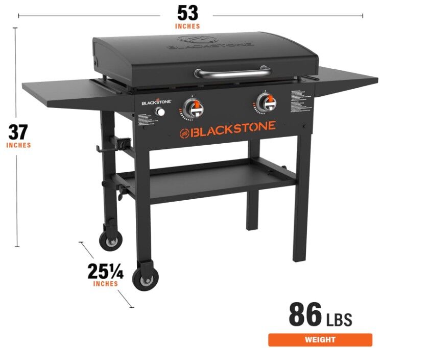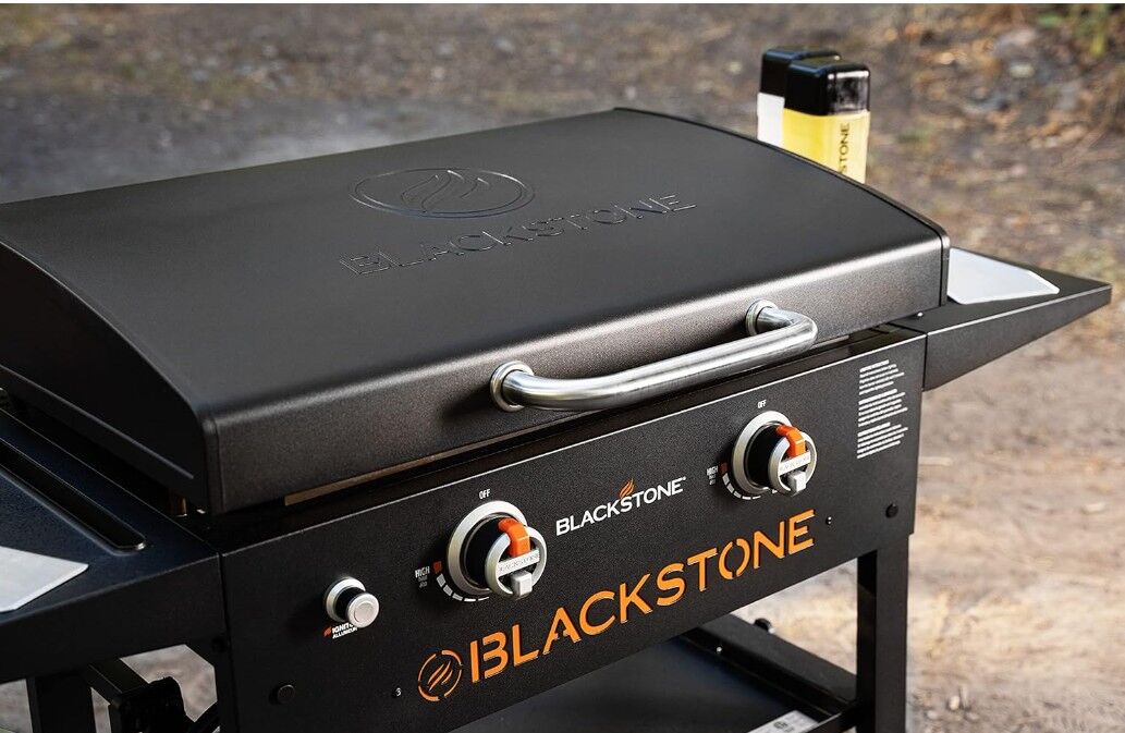 BLACKSTONE 1883 Original 28” Griddle with Integrated Protective Hood and Counter Height Side Shelves, Powder Coated Steel, Black