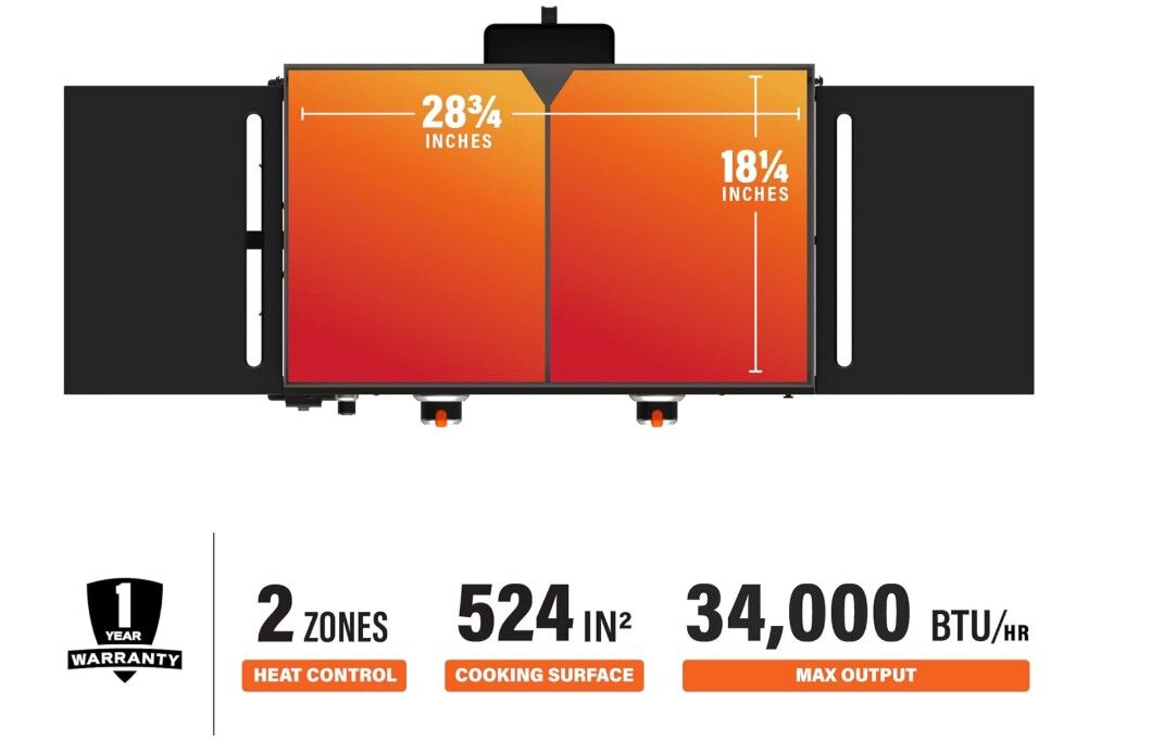 About this item - Cook for a Crowd: Whether you are cooking for a large or small group this griddle is equipped to handle the load. This 28” griddle has 524 square inches of cooking space and can hold up to 21 burgers or 15 pancakes so you can get to eating faster.