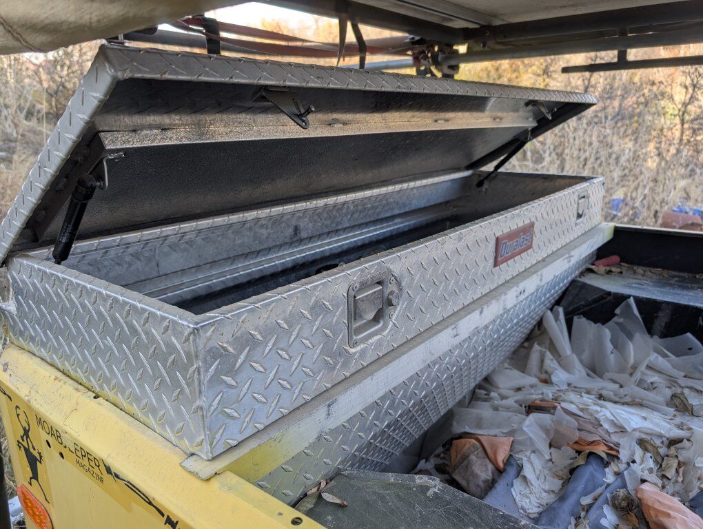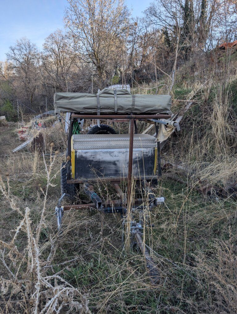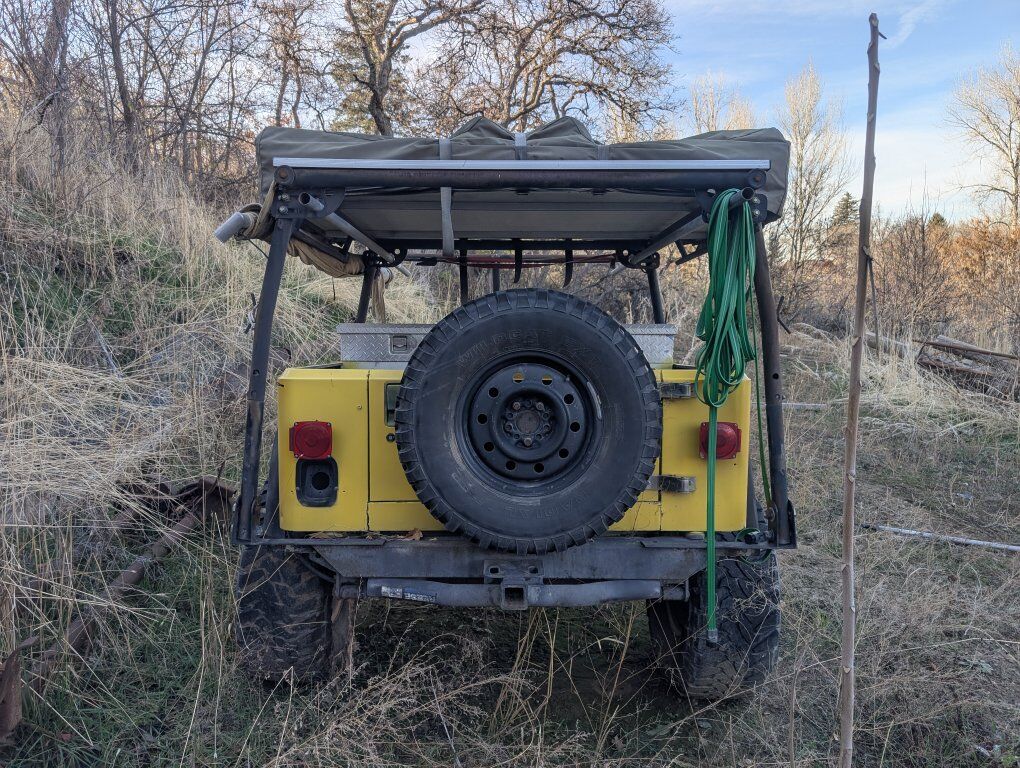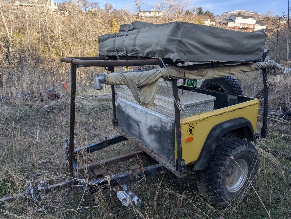 VenmoCustom-built off-road camping trailer made from the rear of a short-bed Jeep truck. Professionally welded frame and built to tow confidently behind a vehicle. Finished in bright yellow and designed as a complete camping hub. Features include: Pop-up roof tent camper mounted on top, ready to use Heavy-duty full-metal truck toolbox for secure gear storage Integrated water storage with spigot Electrical cable hookup possibilities Rear trailer lights with vehicle tow-connection High-quality off-road tires with aggressive tread Rear-mounted matching spare tire Roll-out canopy for shade Rear hitch receiver for bike rack or additional hitch-mounted accessories Fully capable of towing and ideal for storing all camping equipment. With the pop-up tent already installed, this setup is truly ready to go for overland, camping, and adventure travel. It was awesome to setup, play with, use for a couple seasons but due to life's unexpected changes it needs to go to another good owner who will enjoy it! It does need some loving clean up and some geeking out to get er in 5 star shape again!