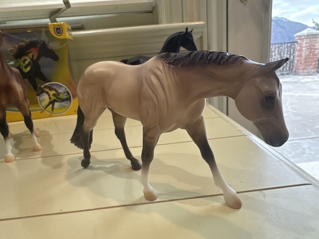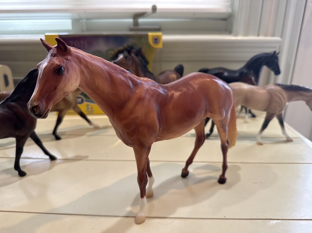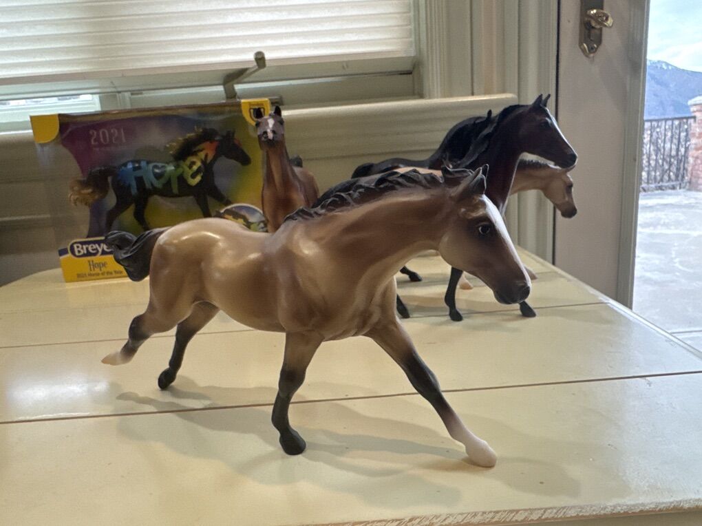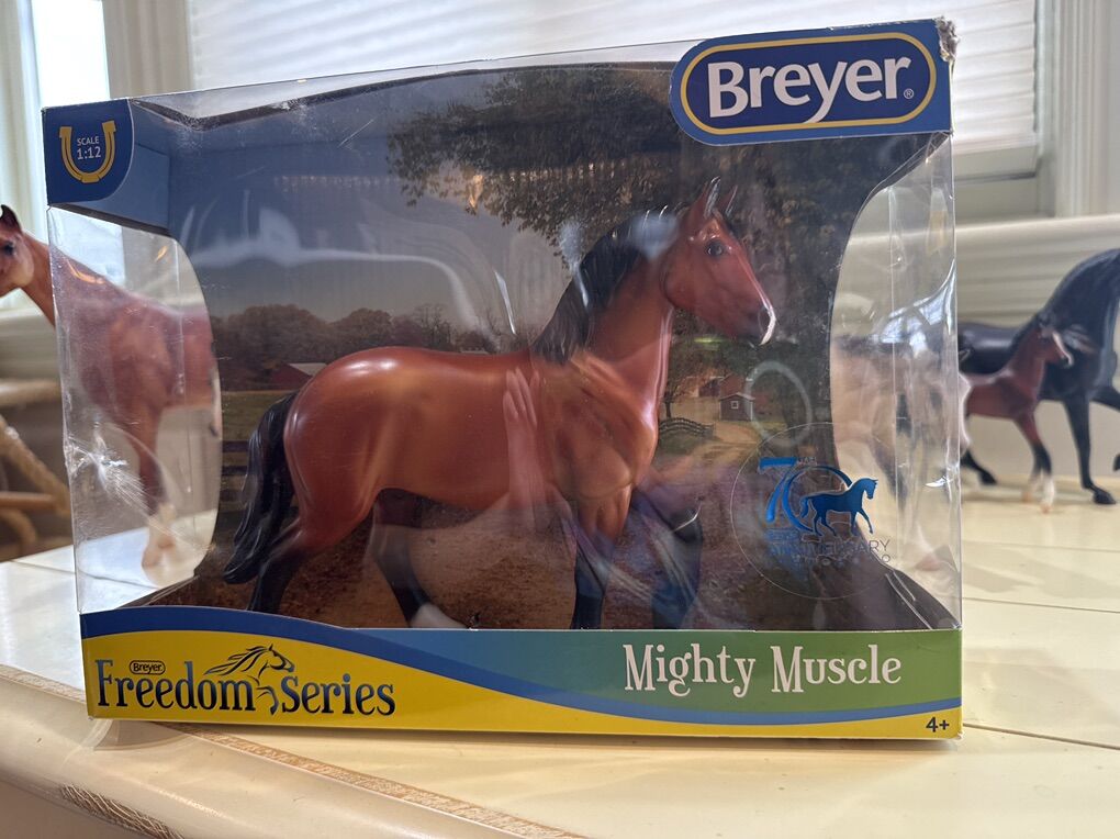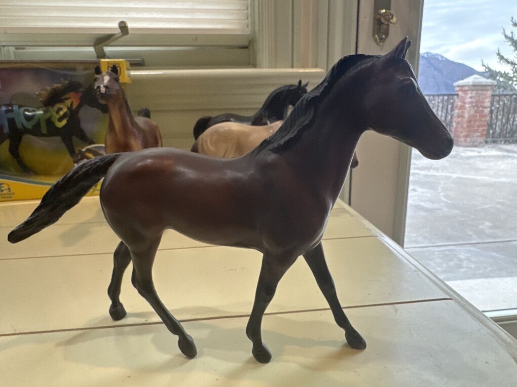 Breyer horses for sale. All in excellent condition. “Hope” new in box $20. “Mighty Muscle” new in box, Belgium $15. Morgan mare and foal $10, Arabian, Quarter horse, and Thoroughbreds all $5 each or $60 for the lot.