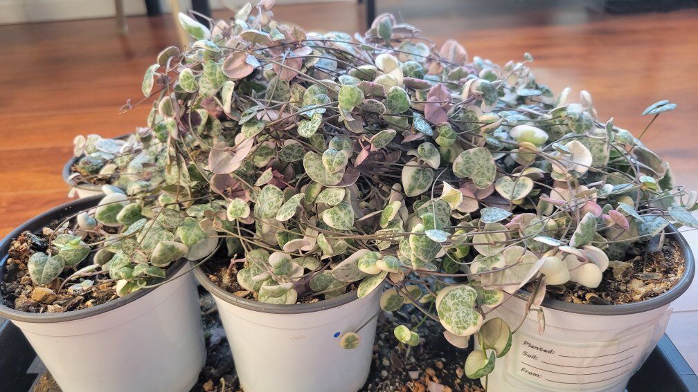 Selling this cute little mess of my Variegated String of Hearts plants. I've tried to untangle them a couple of times but I just don't have the time but this would be PERFECT for someone looking to propagate their own! Just chop and prop!