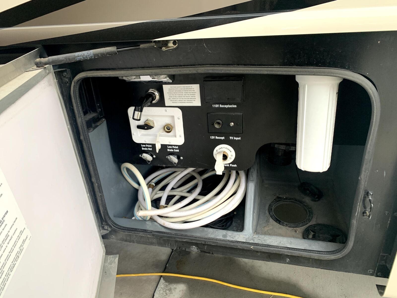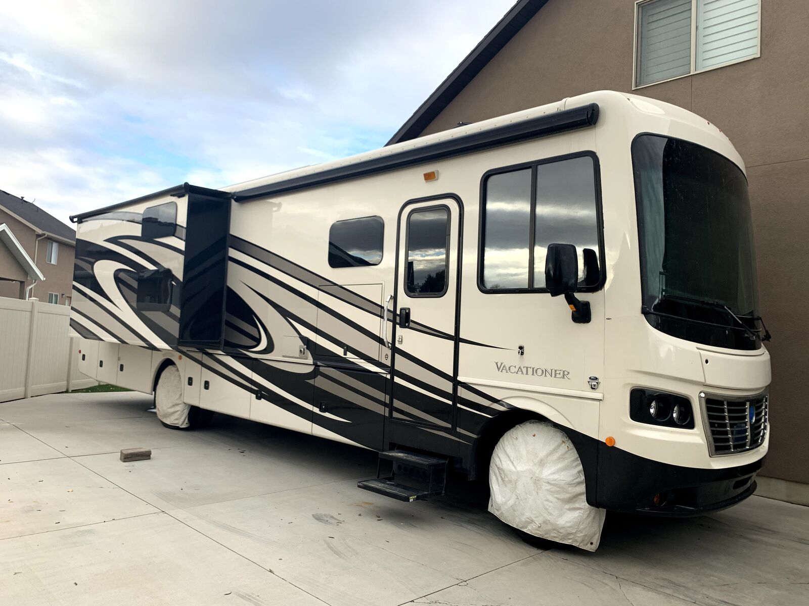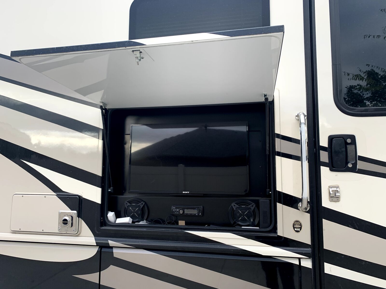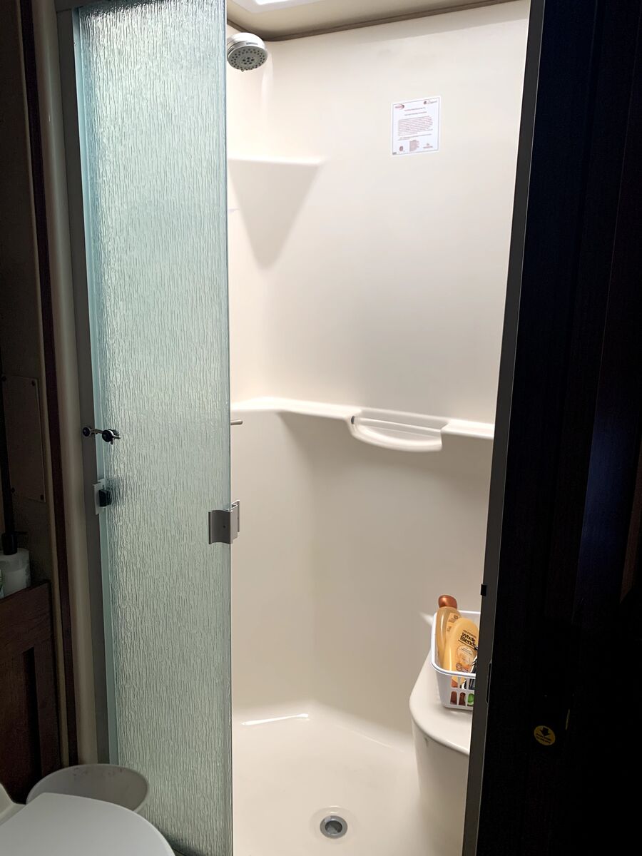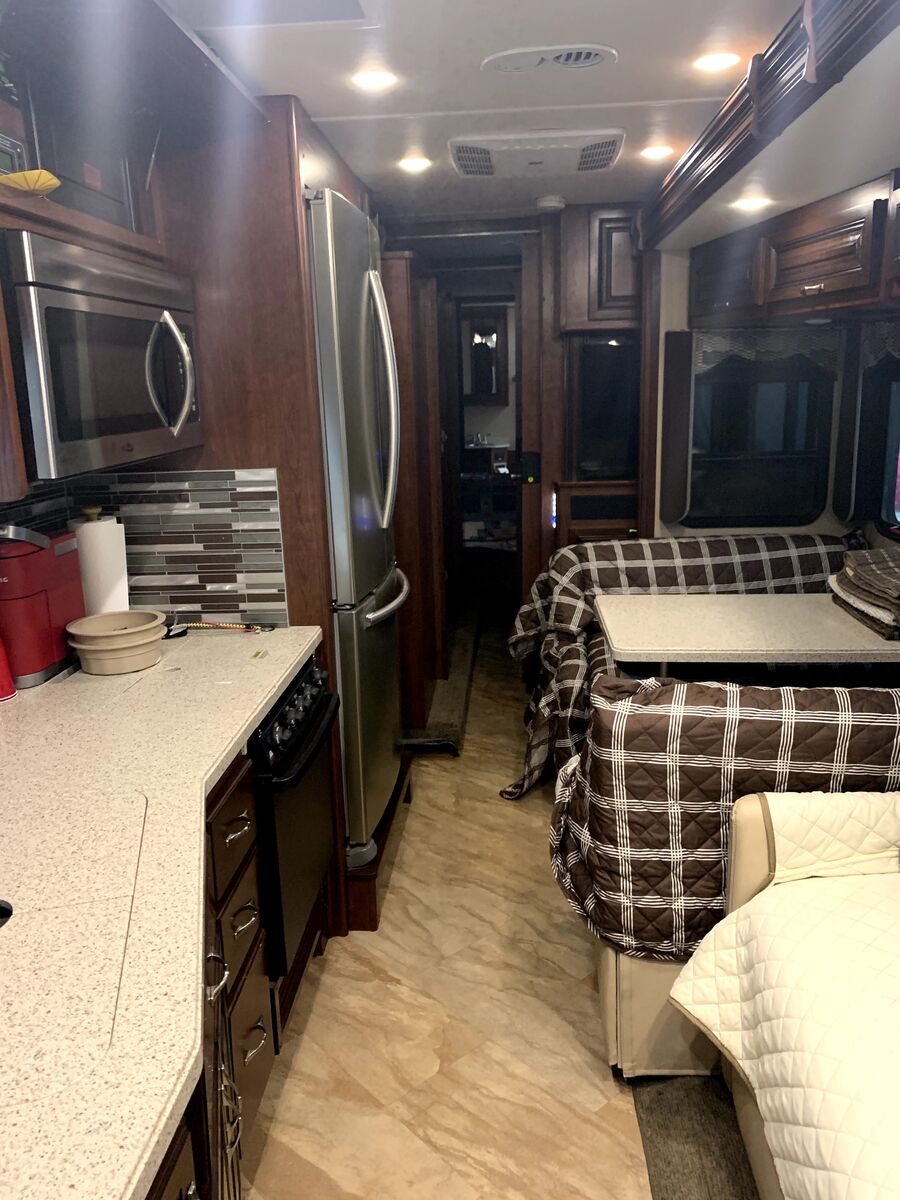 Excellent storage. Has Onan 5500 generator, 2000 inverter, upgraded Solar on top, residential fridge.