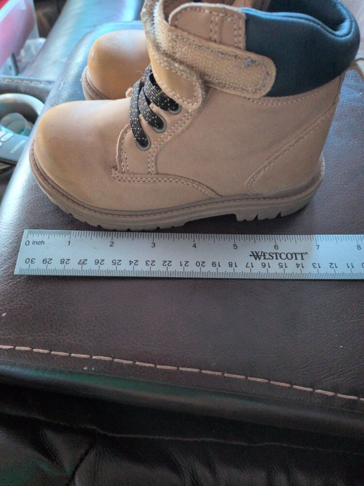 VenmoTan/brown winter boots for toddlers. size 8. good tread on bottom. barely worn. zipper side, stretchy laces and Velcro closure. wonder nation brand.