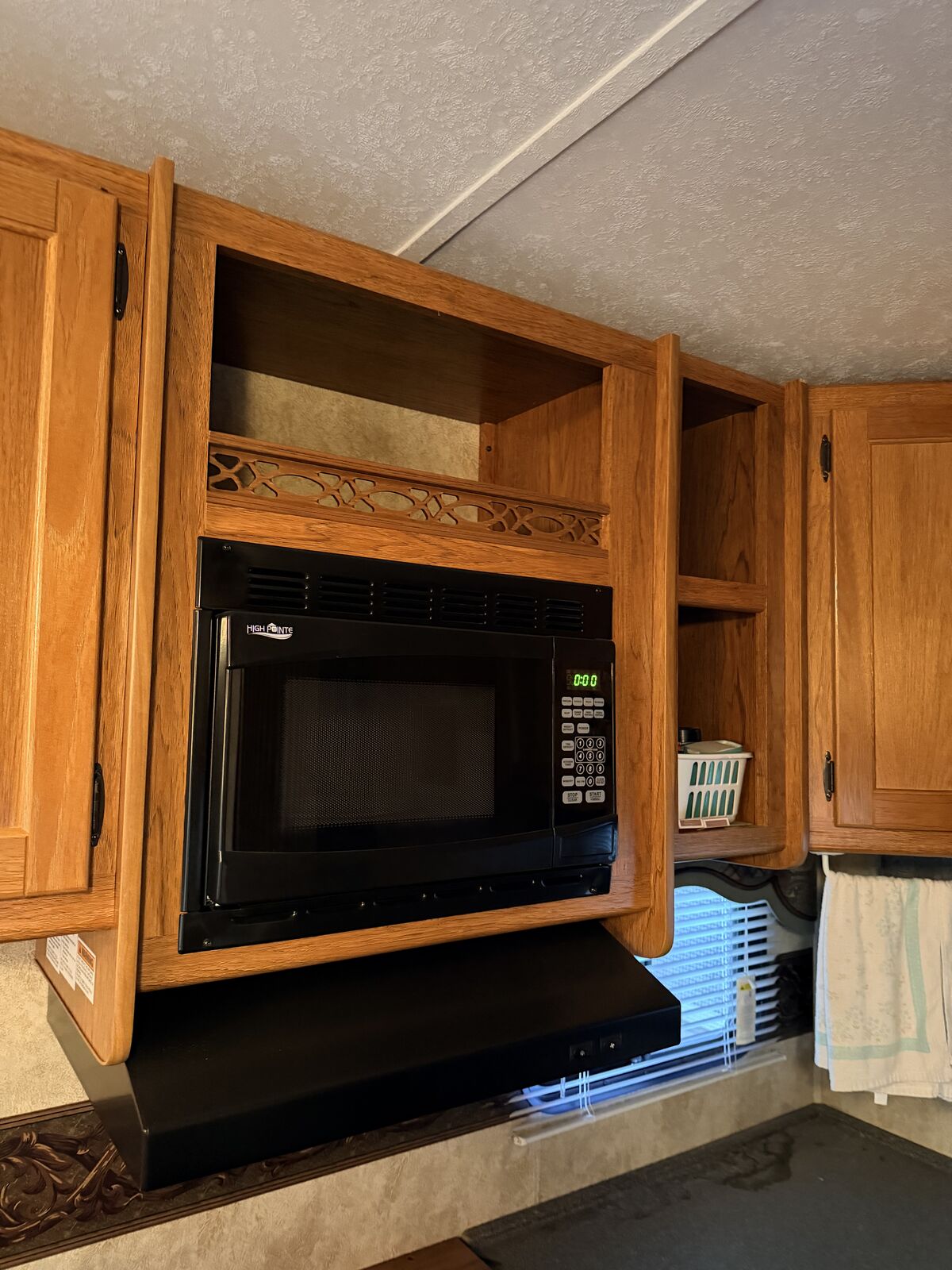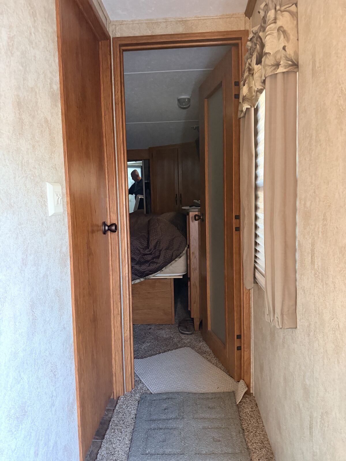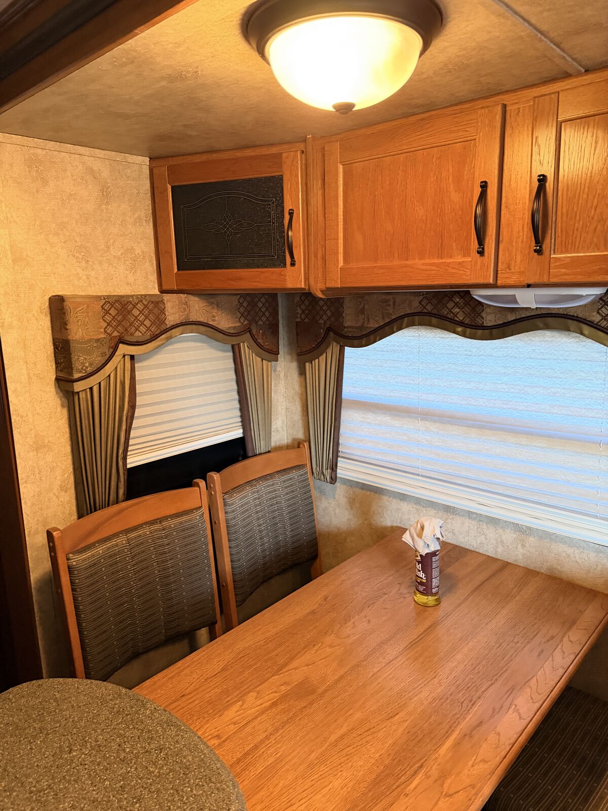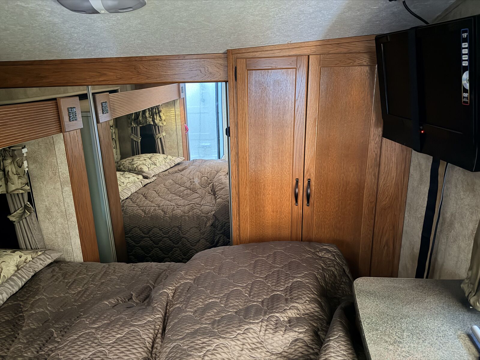 This 2010 Keystone Montana Mountaineer Edition fifth wheel trailer has a dry weight of around 10,000 lbs and a length of approximately 33 feet. The construction is an aluminum frame with fiberglass sidewalls and a walk-on rubber roof. It features two slide-outs (a large slide in the living area and one in the bedroom), power front and rear jacks, a power awning, a 10-gallon gas/electric water heater, 30lb propane tanks, and large front pass-through storage. It has a 70-gallon freshwater tank, an 88-gallon graywater tank, and a 50-gallon blackwater tank. It has a 15,000 BTU auto A/C and a 35,000 BTU heater. The interior features a rear kitchen with an 8cu ft fridge, 3-burner stove w/ oven, microwave, Corian counters, and pull-out faucet. The living area has a freestanding dinette, airbed sofa, two recliners,ceiling fan, TV, and stereo. The Bedroom has a large closet, a washer/dryer prep, and a TV. The bathroom has a porcelain toilet, a nice sink area, a large corner shower, a skylight, and a fan. The trailer has only been on the road a few times. It has mostly just sat in the backyard unused. $17,000 OBO.
