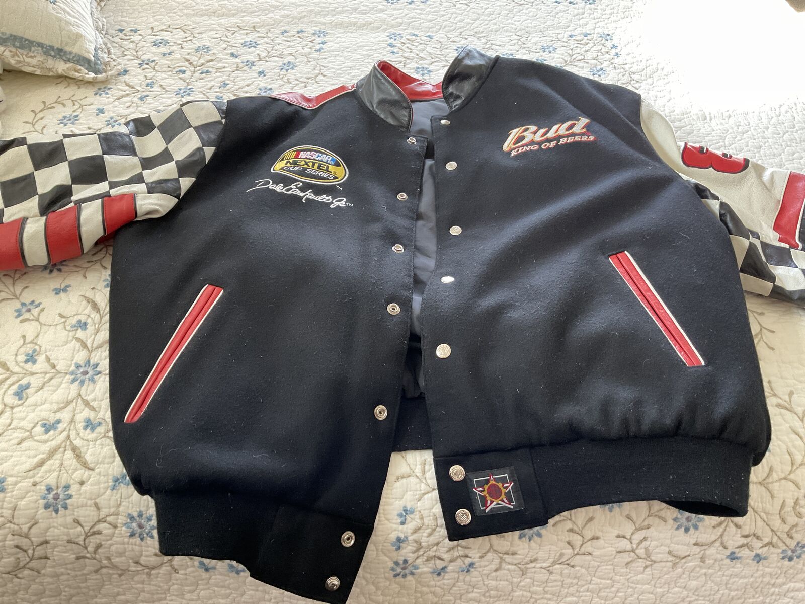 Men's Jacket - NASCAR Dale Earhart Jr jacket with leather sleeves in excellent condition. Only worn once for $125.00. Heavy and warm. Cash Only and no Venmo. In Kanarraville, Utah