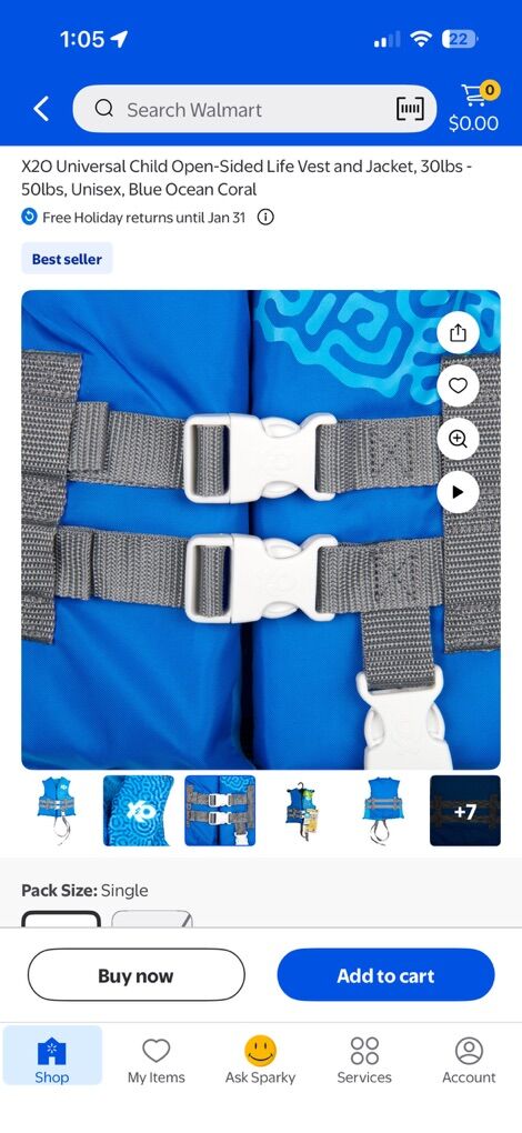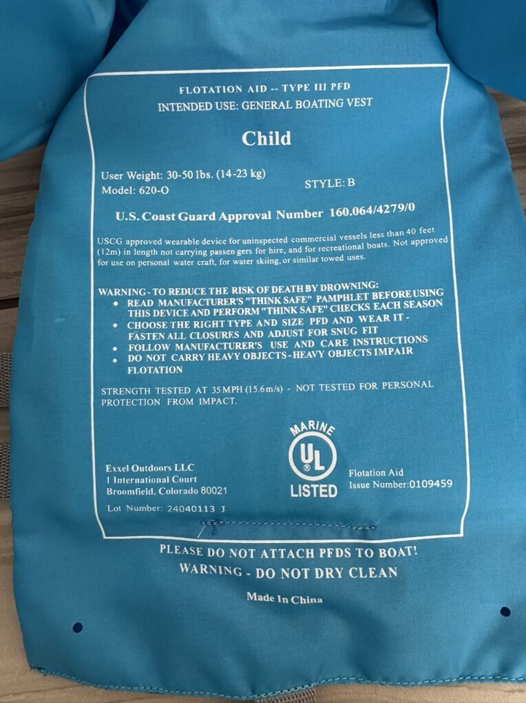 ApplePayX2O Universal Child Open-Sided Life Vest and Jacket, 30lbs - 50lbs, Unisex, Blue Ocean Coral