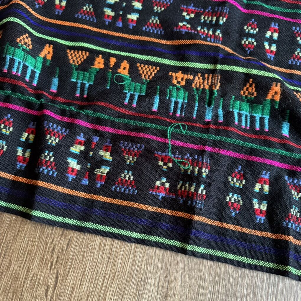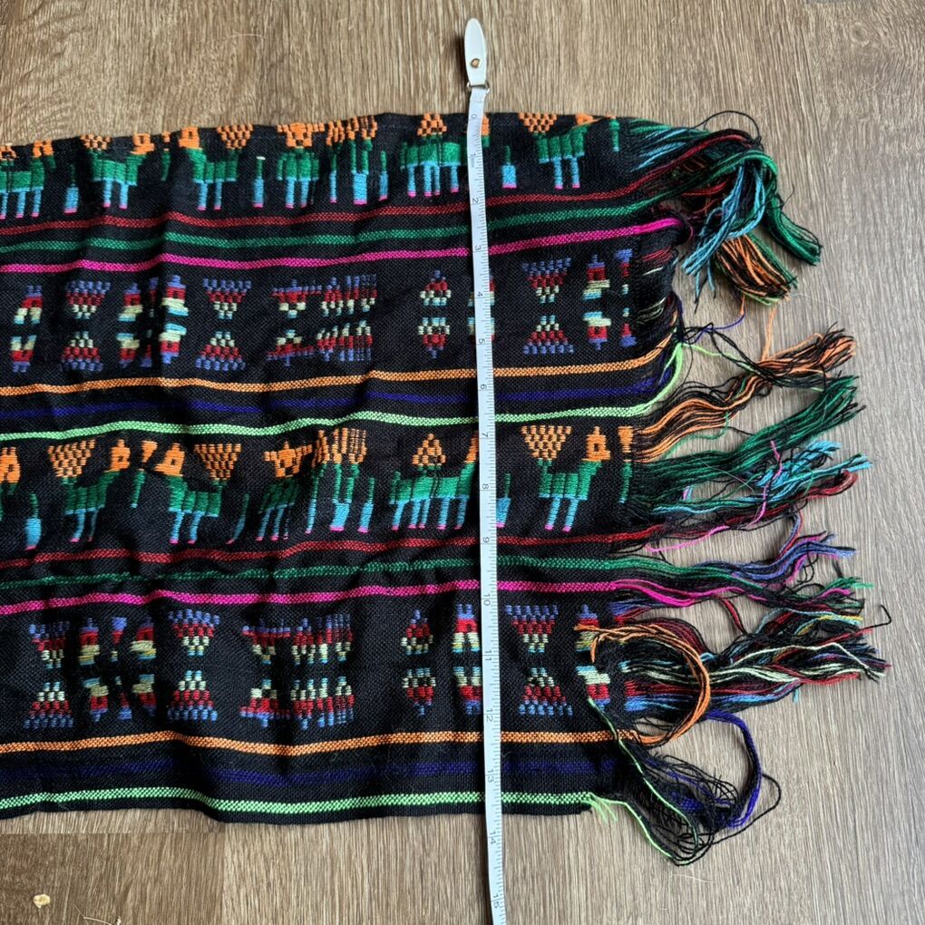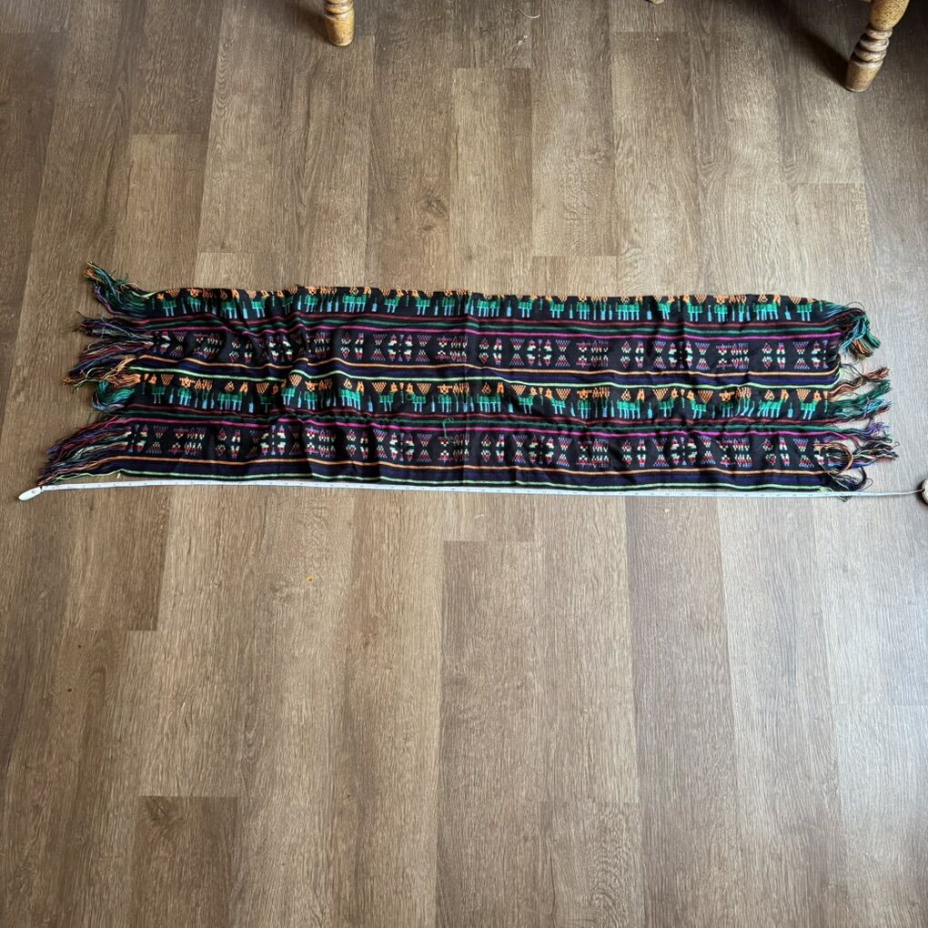 Mexican Rebozo Table Scarf w/ Animals & Stripes Does have a couple snags