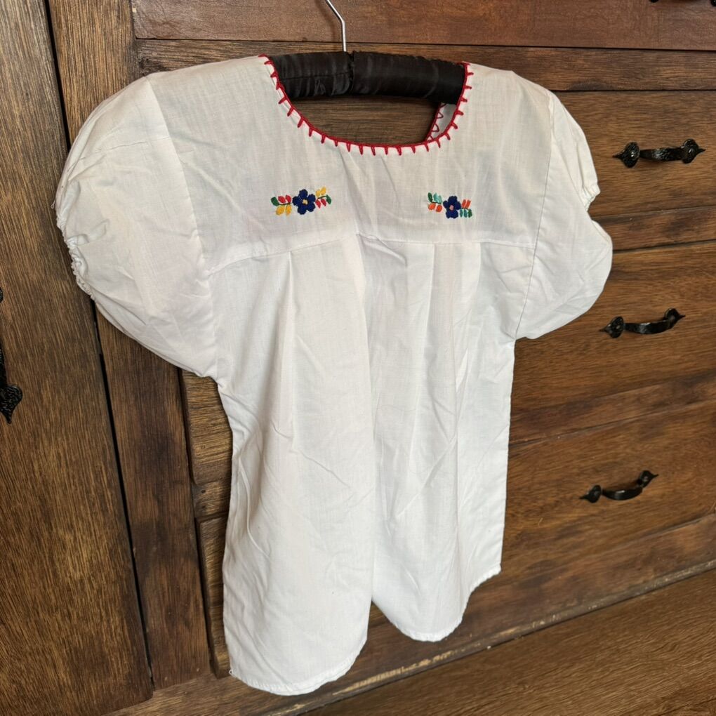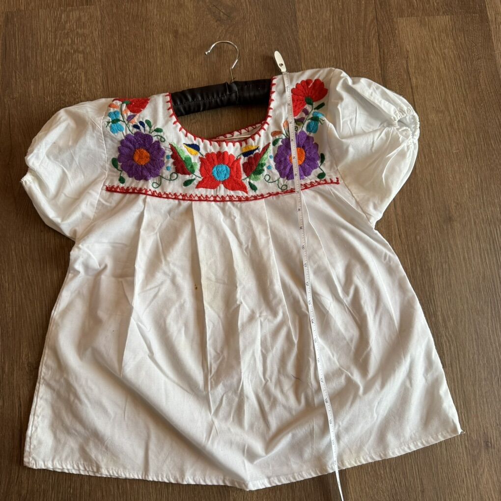 Mexican Floral Embroidered Top Size Small Does has some light staining (see photos)