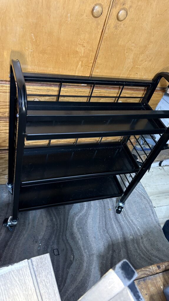 Has great rollers on the bottom that lock in place, includes 5 shelves that you can place at desired height. Solid steel construction. Black grate on the back can be used for tool storage or additional storage shelving. They are disassembled but if you would rather me put them together for you prior to pick up I am happy to do so, free of charge. Call or text with any questions.