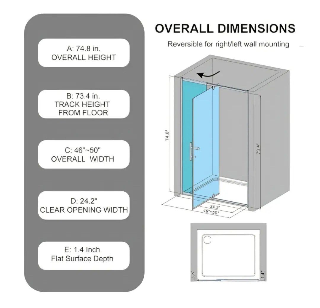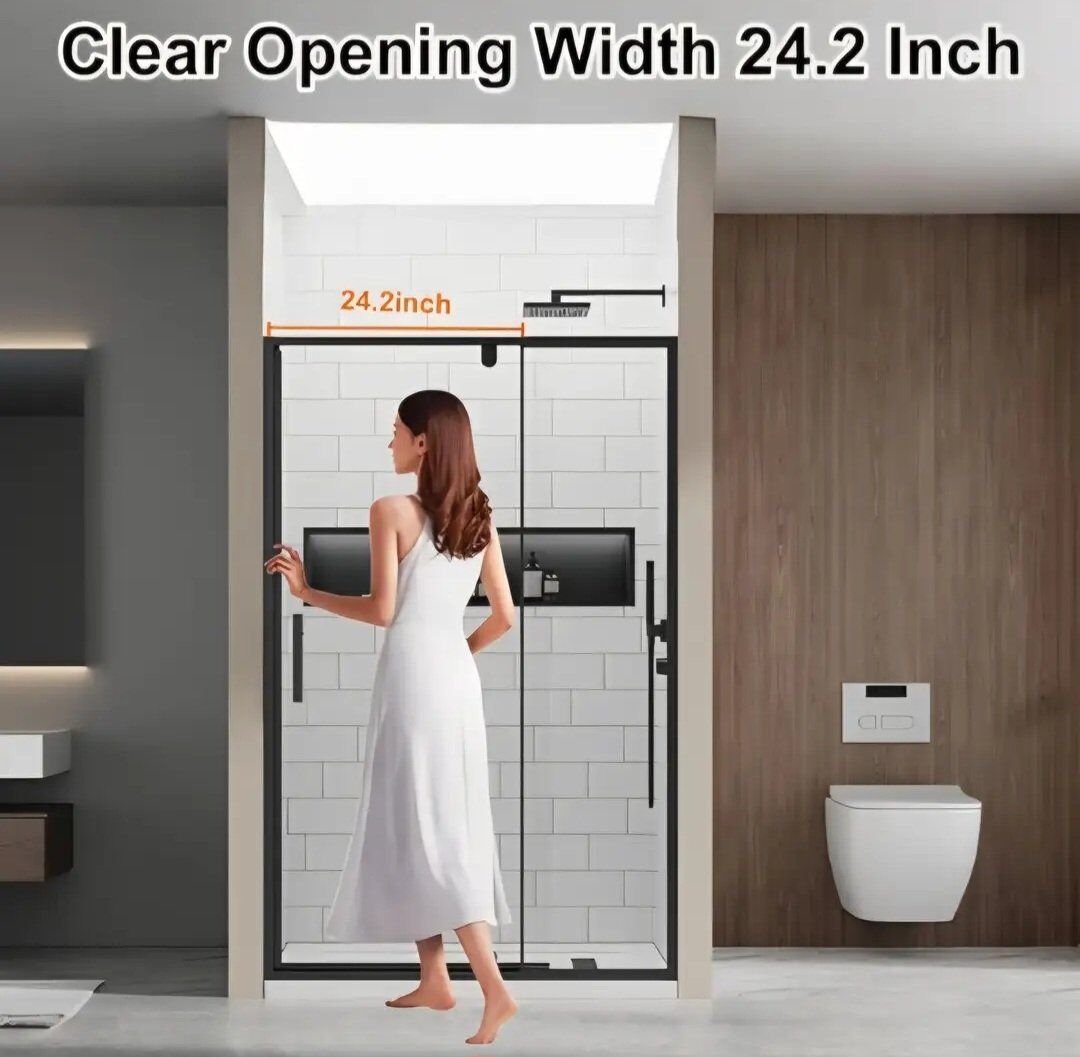 Pivot Glass Shower Door, 48" W(46"~50" W) x 75" H Swing Pivot Hinged Shower Doors, 1/4" Clear SGCC Tempered Glass with Dual Nano Coating, Easy to Clean for Bathroom - Matte Black
