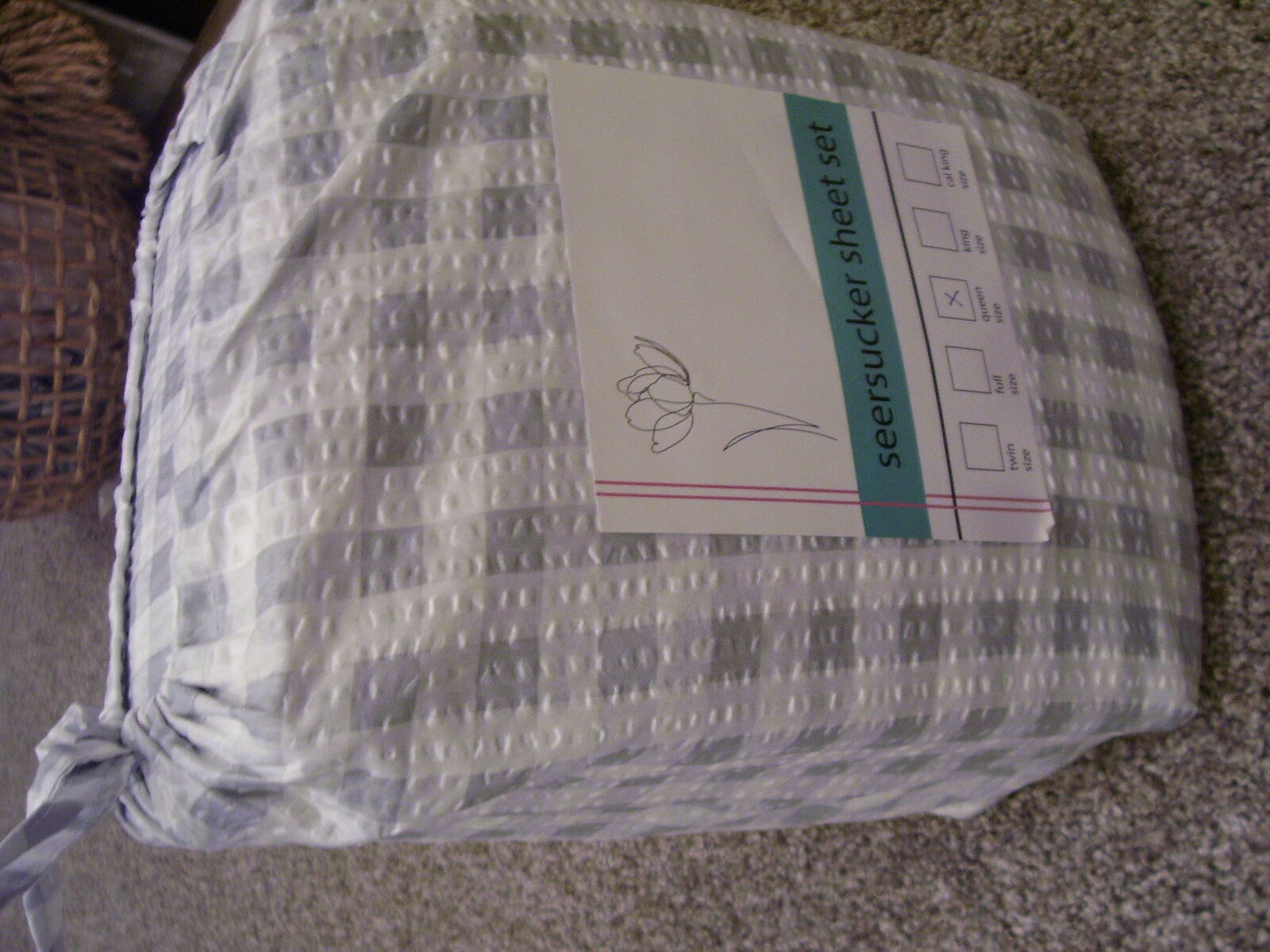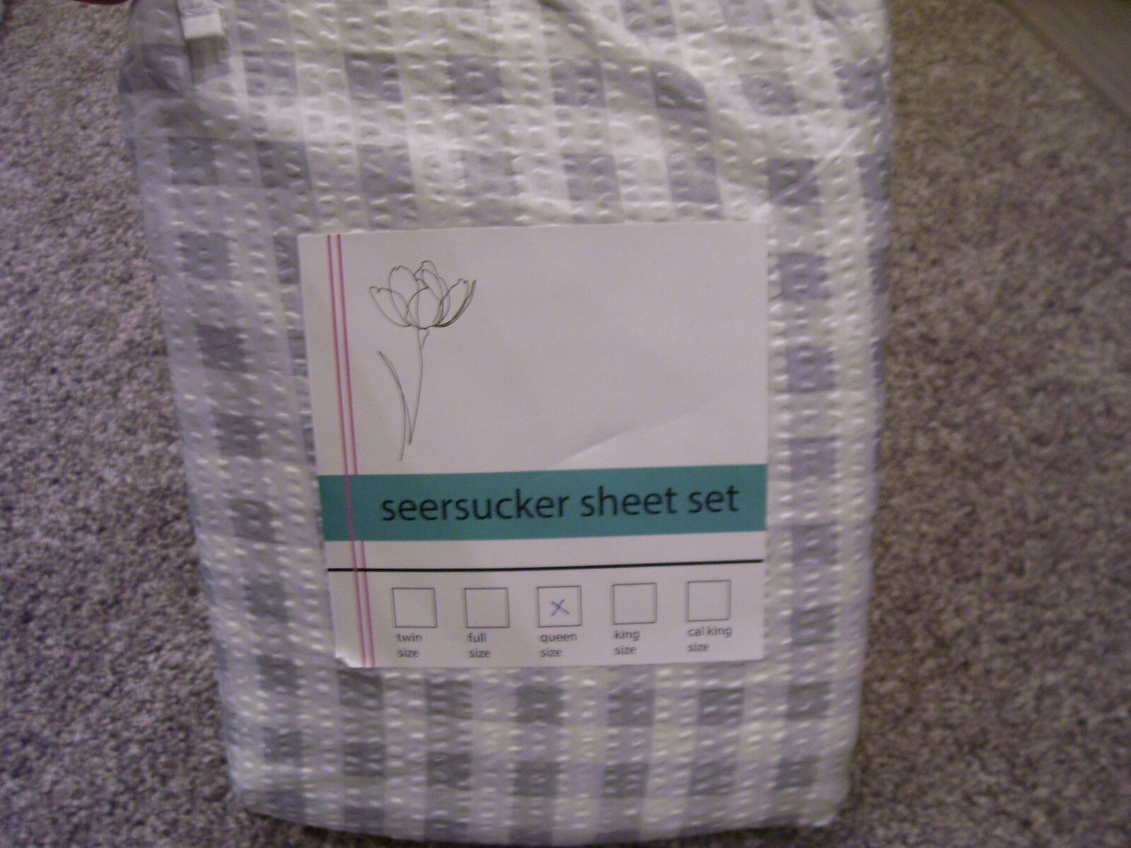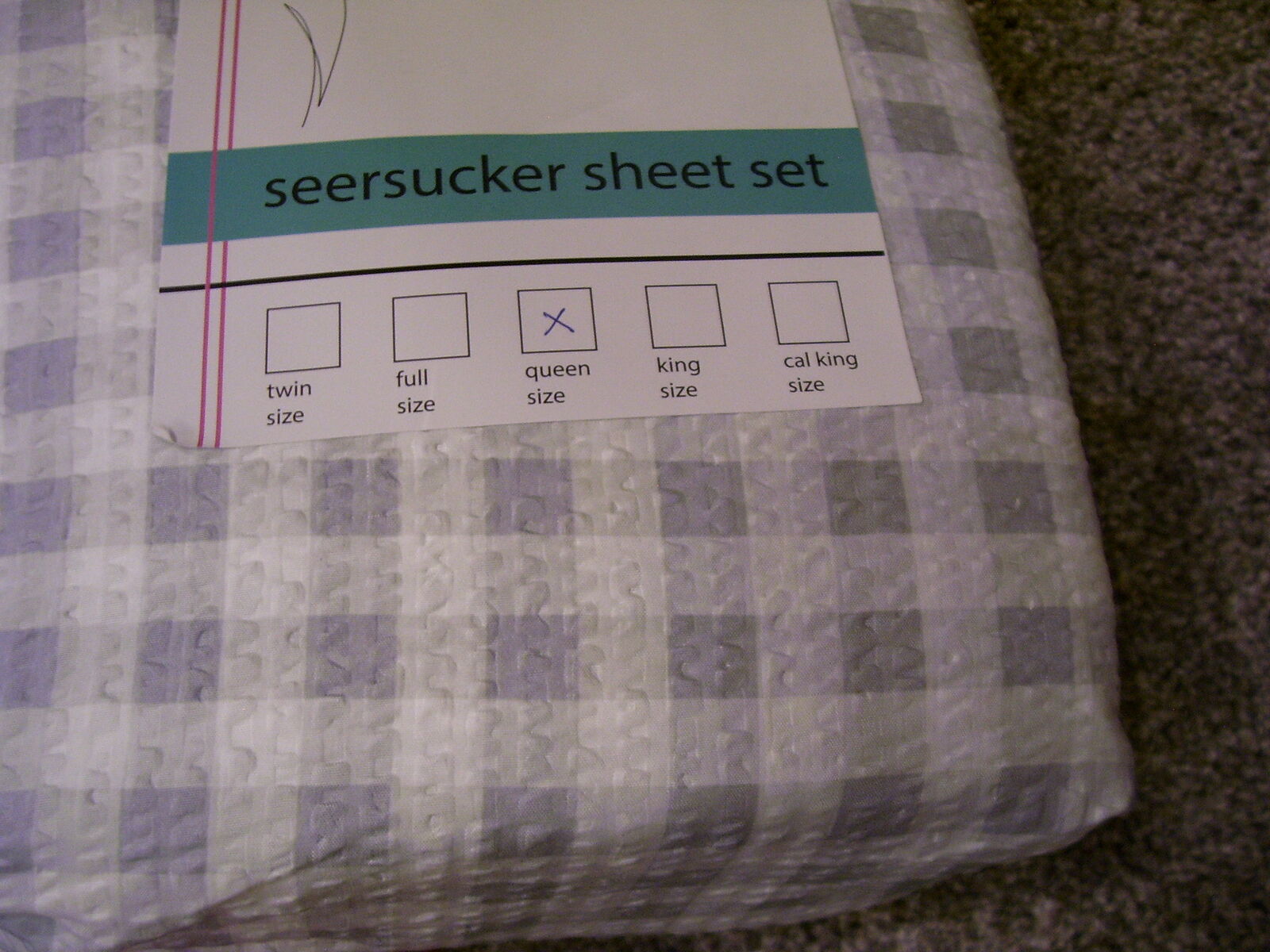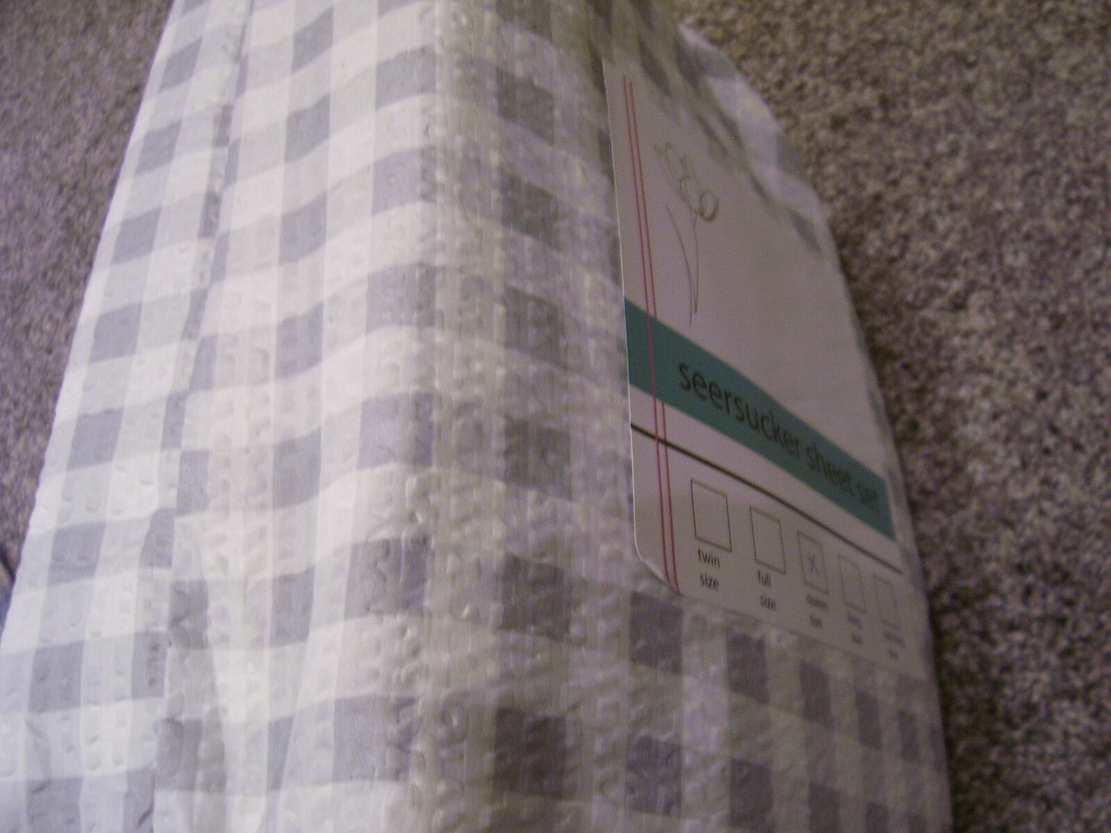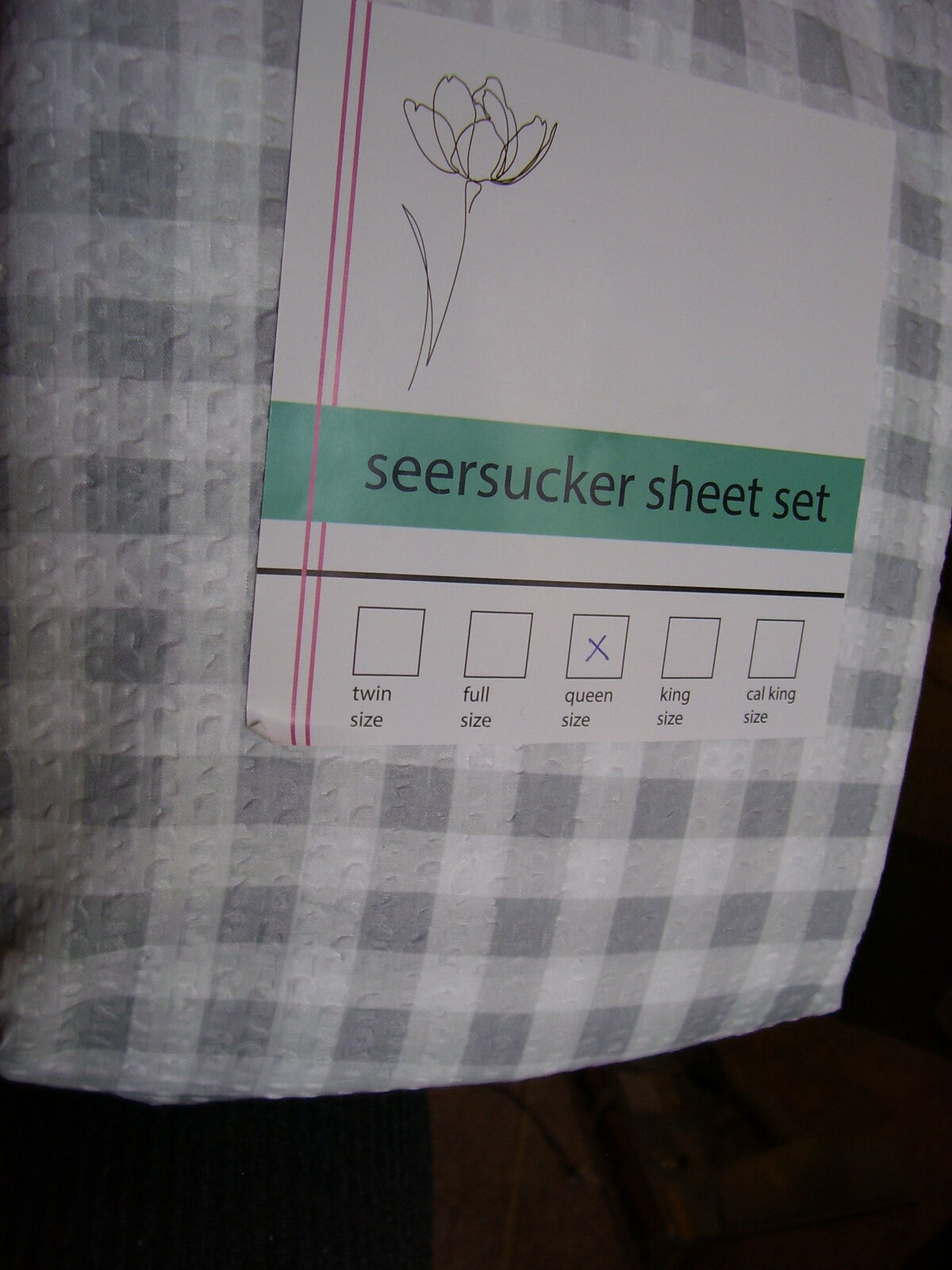 Gray and White Gingham checkered plaid polyester fabric. Shavel Home Brand. Includes 1- Fitted sheet, 1- Flat sheet, and 4-pillowcases. These are lightweight and soft. Perfect for any bedroom, guest room, RV, or camper.