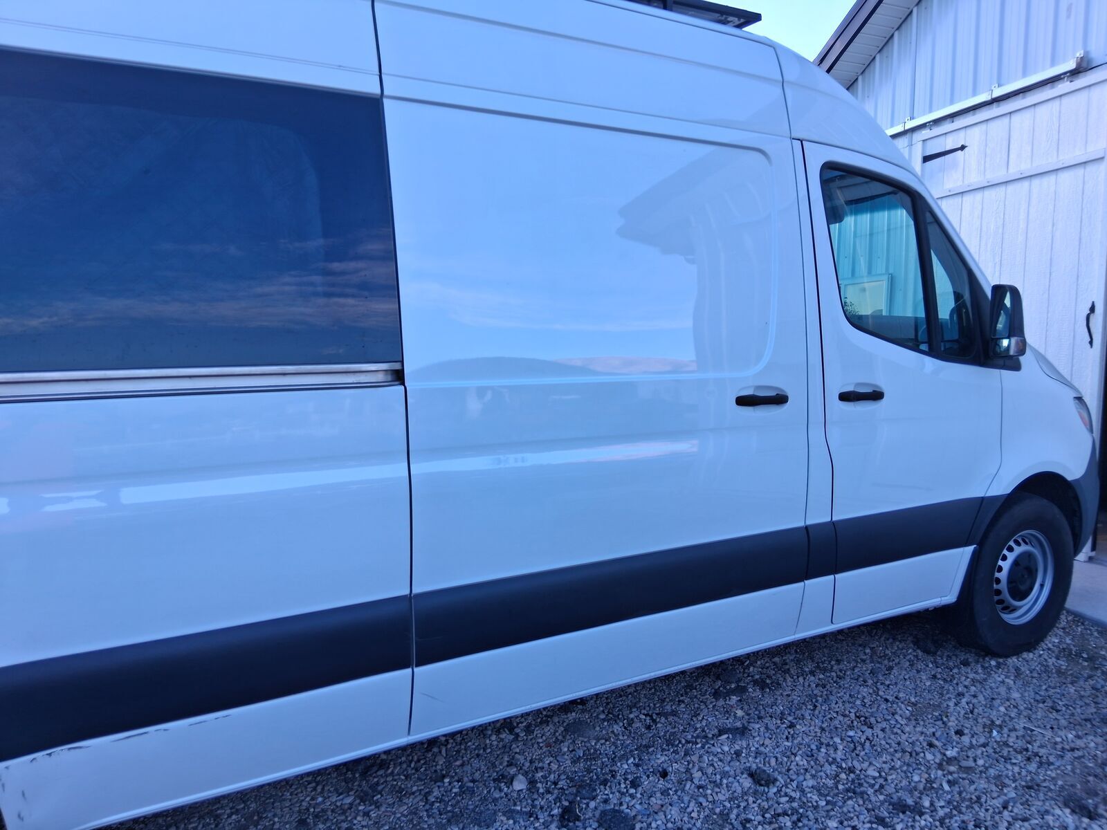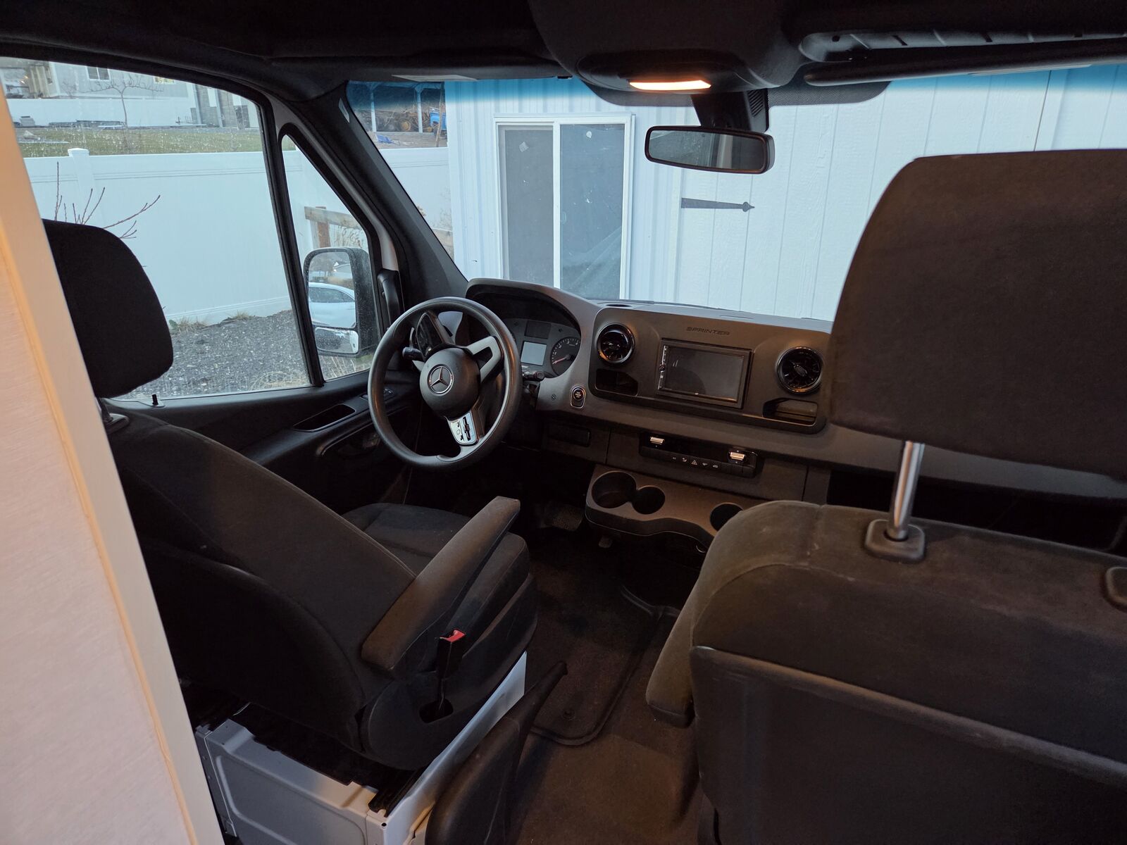 The greatest van ever built. It’s on a ’22 170” Mercedes, which means it’s going to last forever, Especially with only 23,000 miles on it. It has everything you need for the van life in luxury. We’re talking a full shower, toilet, 30 gallon fresh water, water heater, diesel heater, fans, 12 volt fridge, sink, microwave, TV with built in DVD. But even better than that is the full sized bunk bed that lowers to comfortably sleep 4, When I say comfortably I mean sleeping so good you wake up forgetting what year it is.