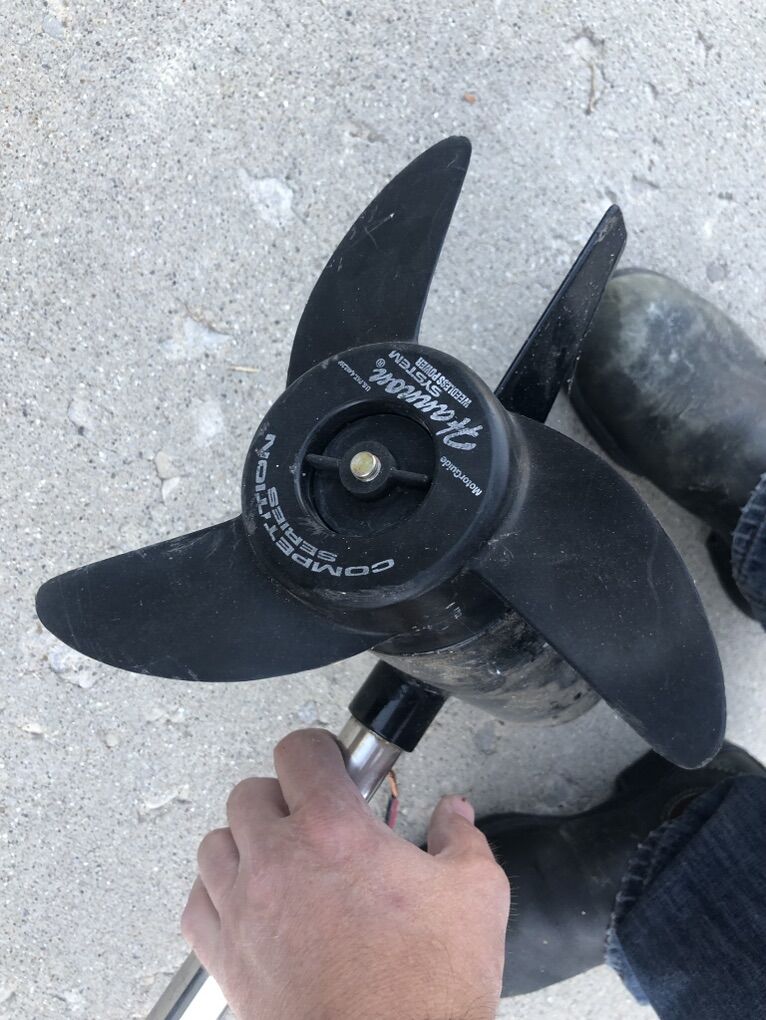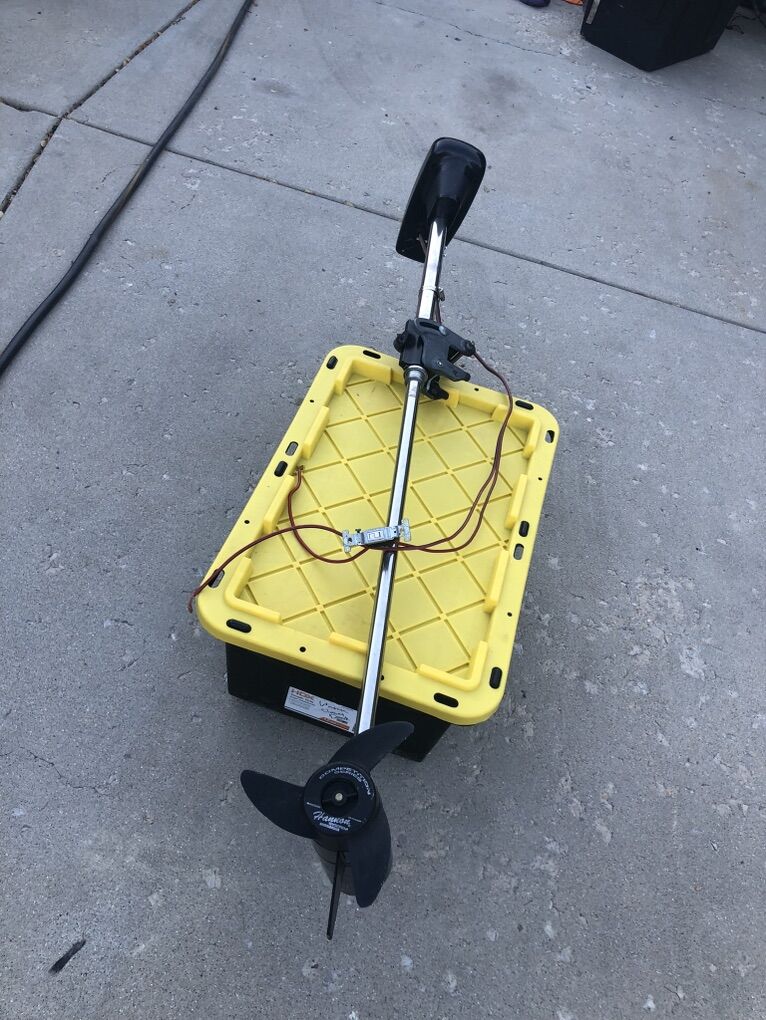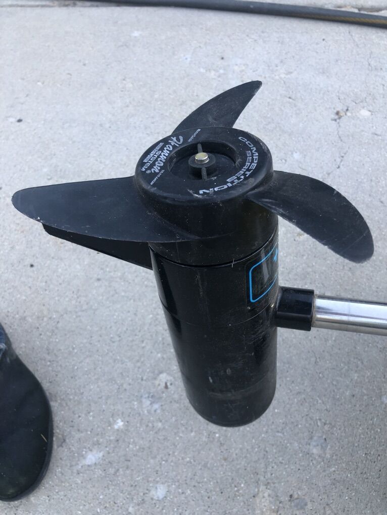 ApplePay12 volt, 52 lbs thrust. Used but has plenty of life.