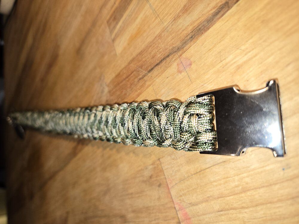 20 inches dog collar 1 inch wide. This is a great strong camo dog collar. text for questions or address