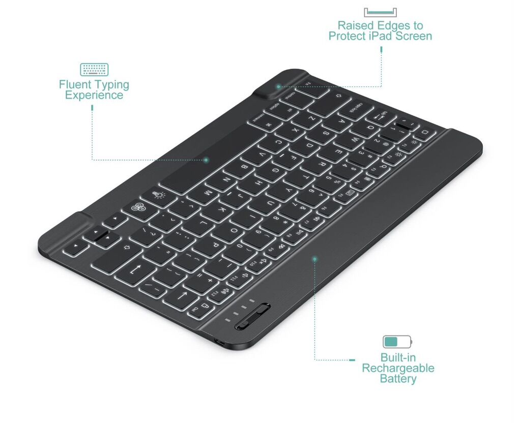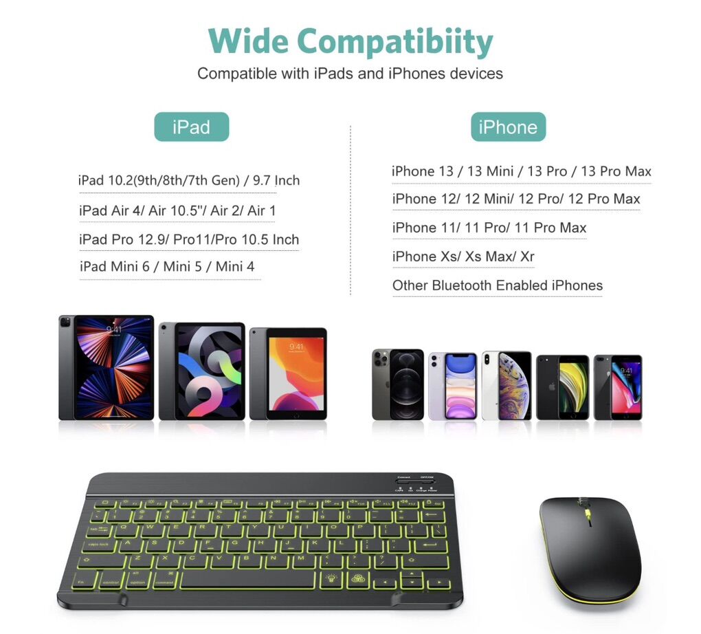 TECURS Bluetooth Keyboard and Mouse Combo for iPad - Rechargeable Wireless Keyboard & Mouse with 7-Color Backlit Compatible with iPad 10th/9th/8th Gen, iPad Pro/Air/Mini, iPhone15/14/13 Pro, Black