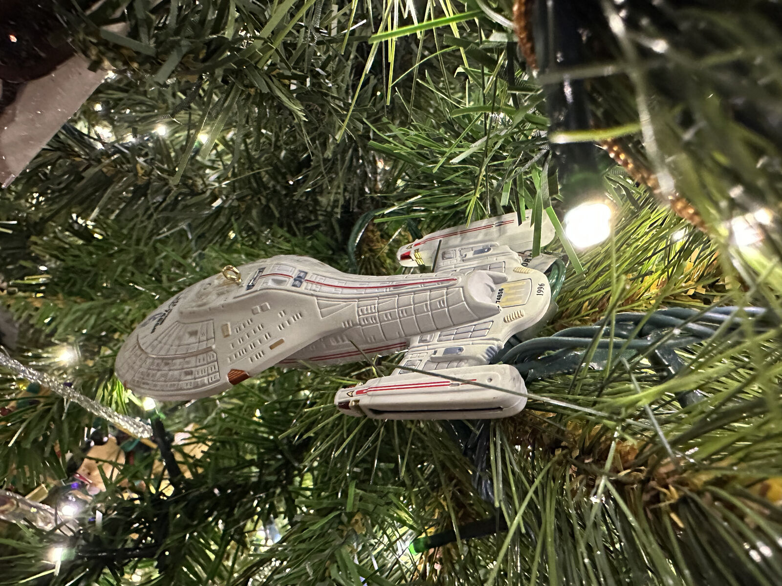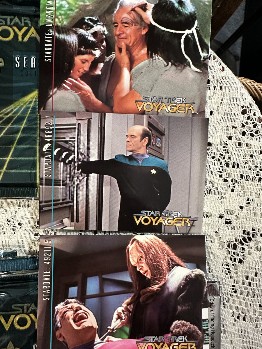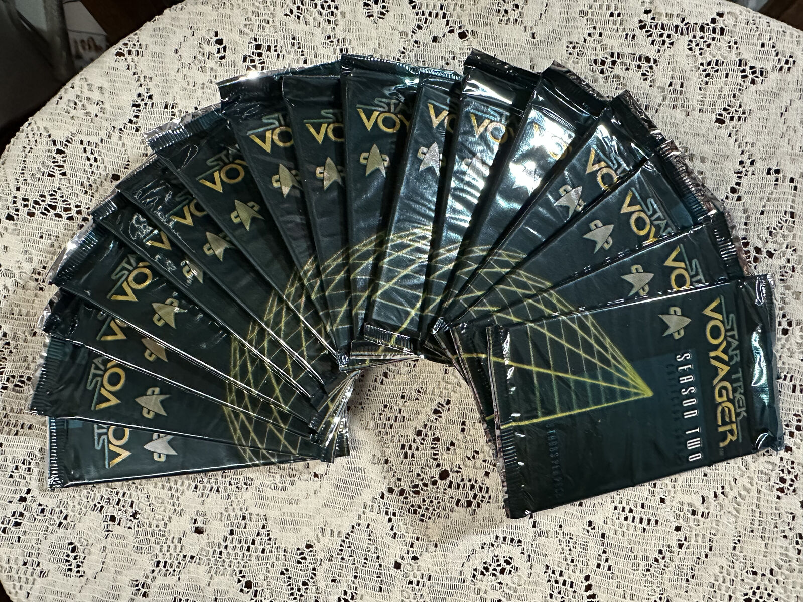 VenmoRemember that time Q turned Voyager into a Christmas Ornament? (see video). Released in 1999, This Hallmark Light & Magic Ornament is in pristine condition with original packaging and box. Voyager's nacelle lights, Bosuard collector and running lights all light up when pluged into a string light , Included are 17 packs of Original Voyager collector trading cards. Some opened, most are not.